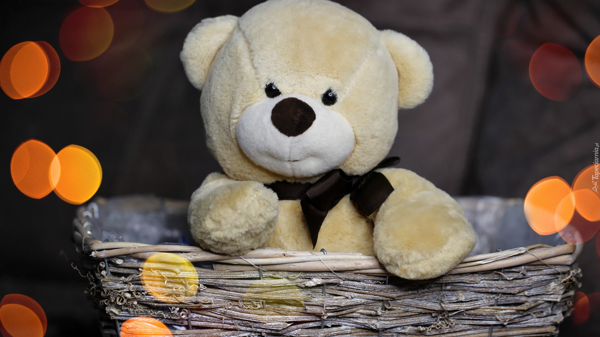 Edytor tapety: Pluszowy miś w wiklinowym koszyku
