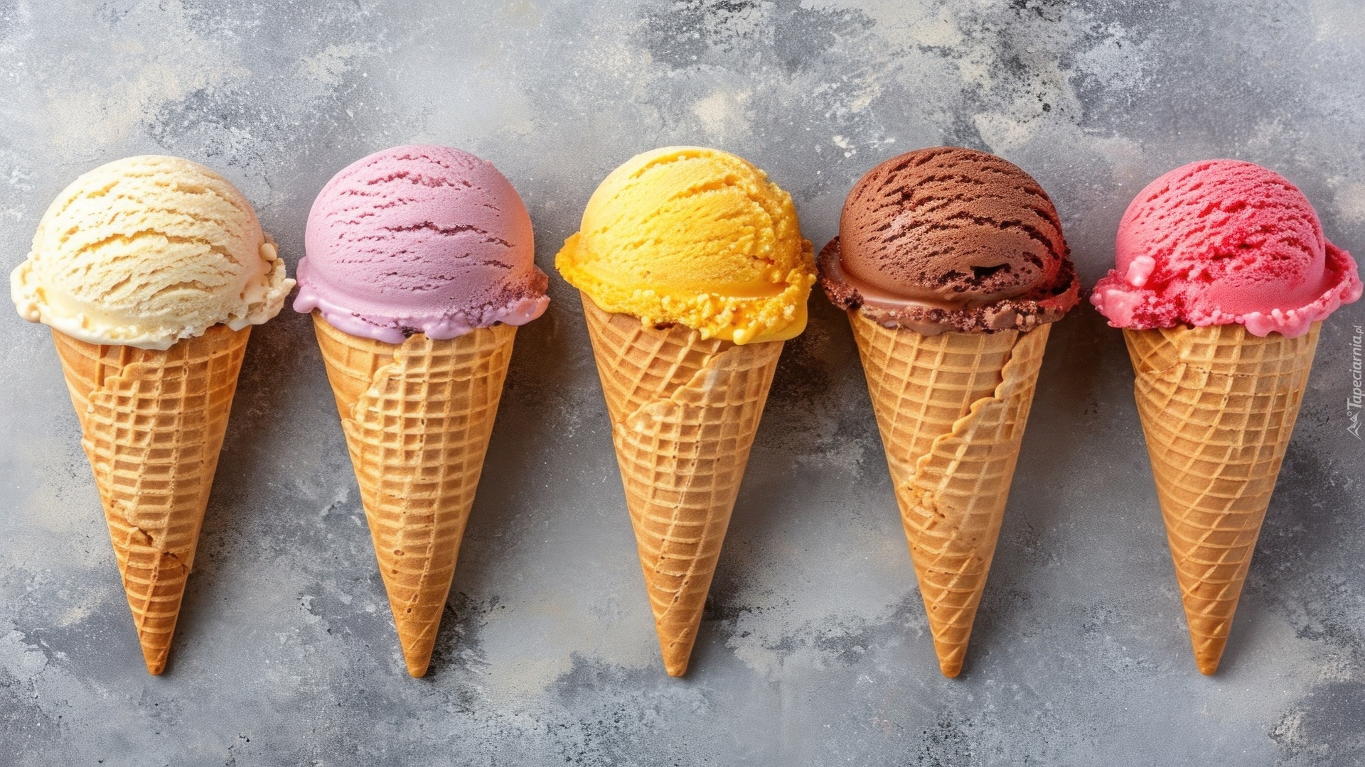 Edytor tapety: Lody w rożkach waflowych