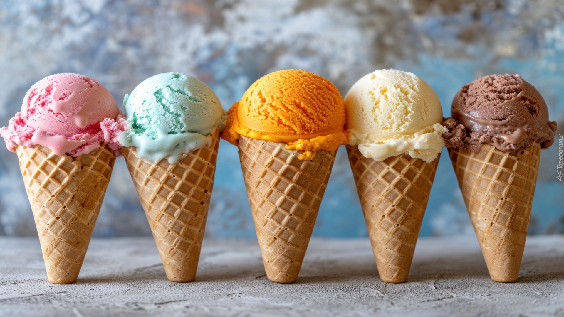 Edytor tapety: Rożki z lodami o różnych smakach