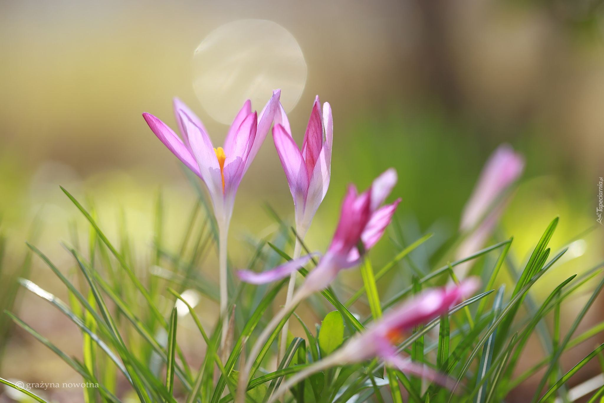 Edytor tapety: Różowe krokusy w trawie