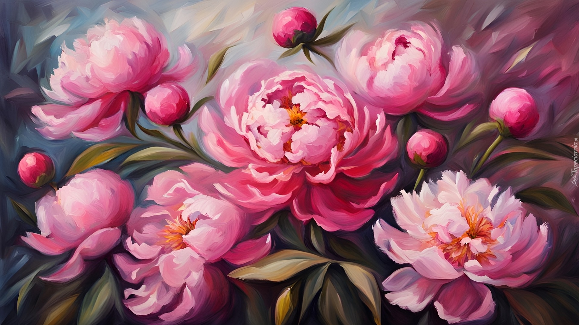Edytor tapety: Różowe piwonie z pąkami w grafice