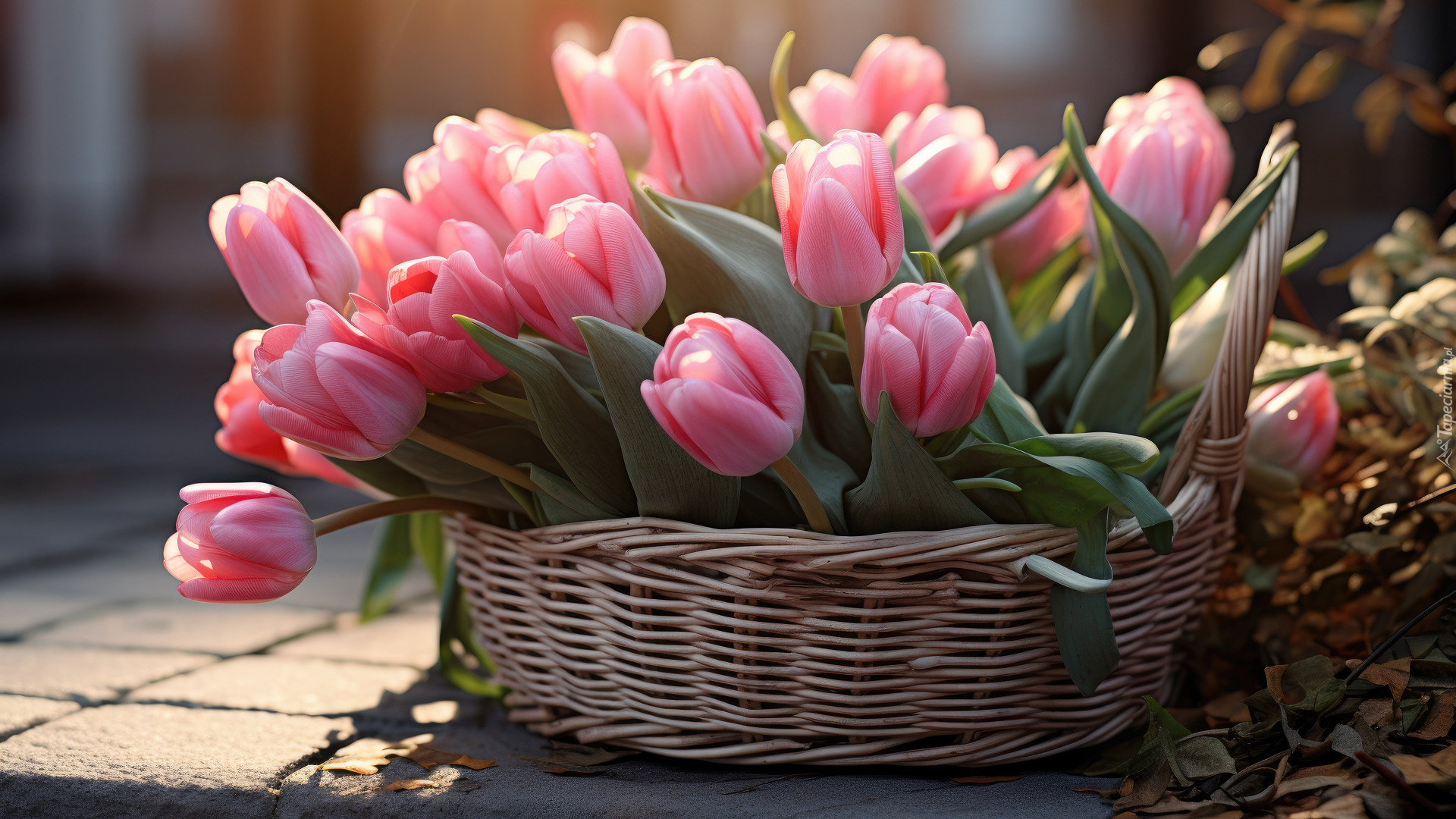 Edytor tapety: Rozświetlone różowe tulipany w koszyku