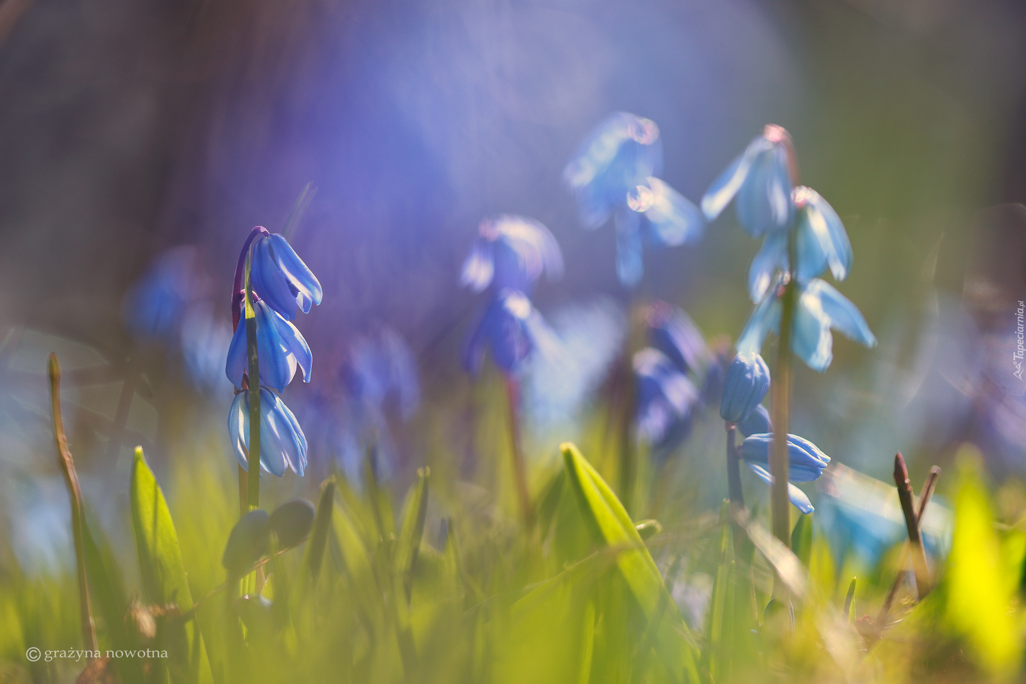 Edytor tapety: Rozświetlone cebulice syberyjskie w trawie