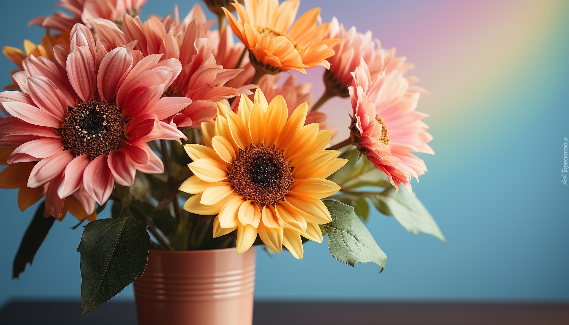 Edytor tapety: Kolorowe kwiaty w wazonie na tęczowym tle