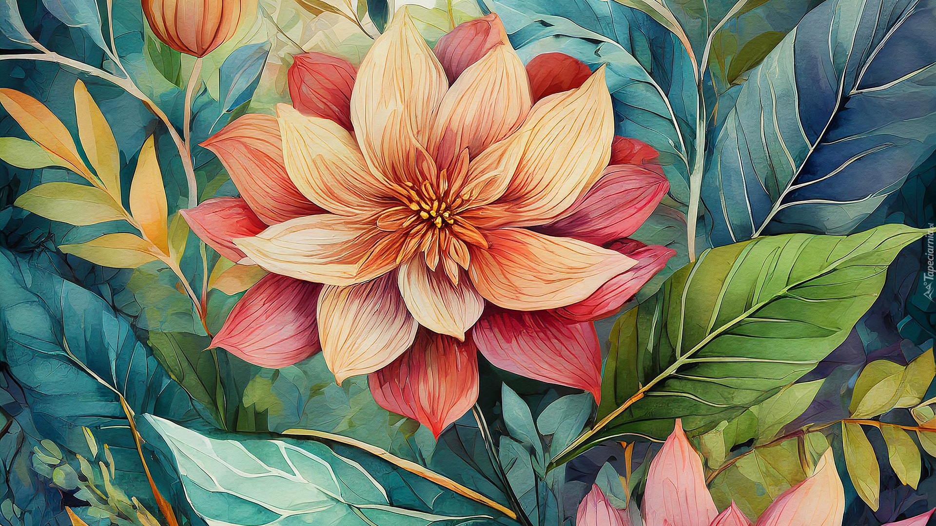 Edytor tapety: Grafika rozkwitniętego kwiatu i liści