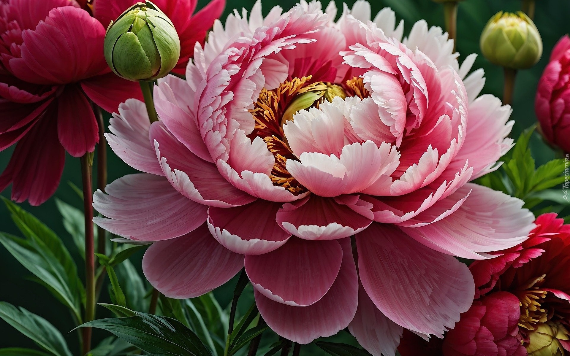 Edytor tapety: Rozkwitająca różowa piwonia z pąkami