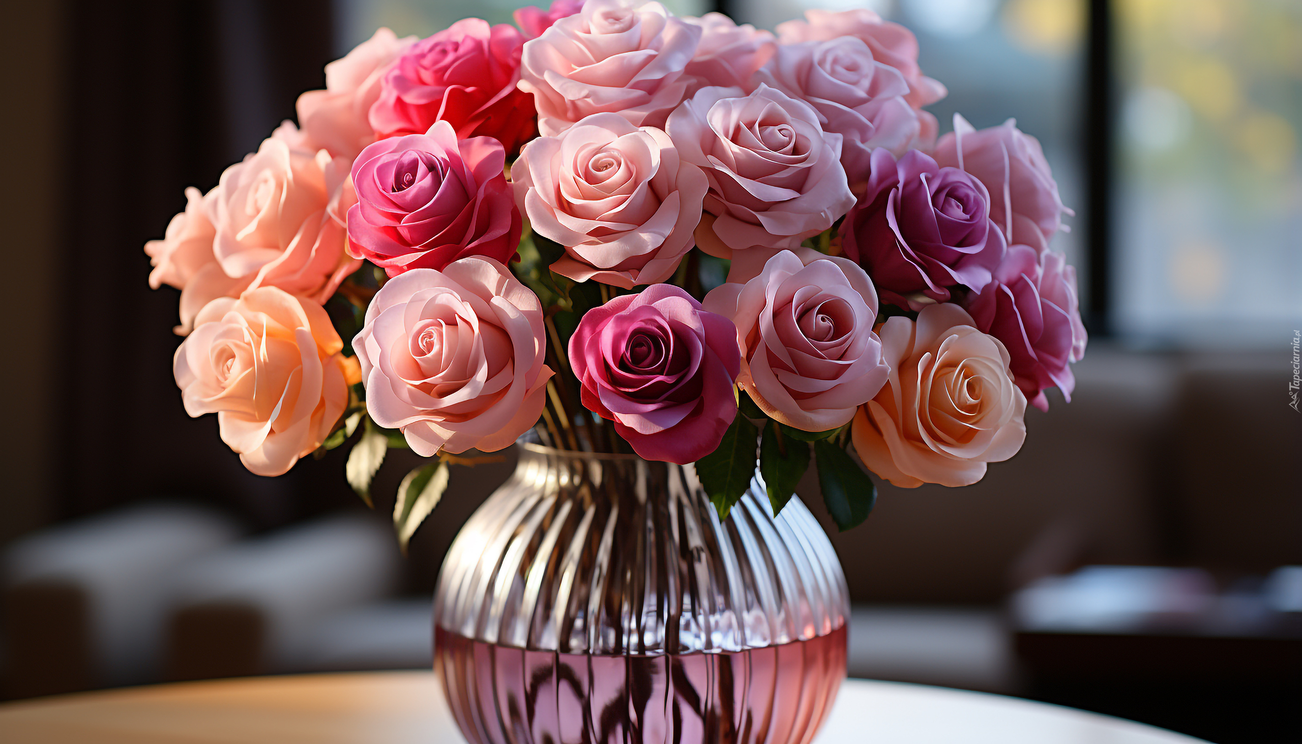 Edytor tapety: Kolorowe róże w wazonie