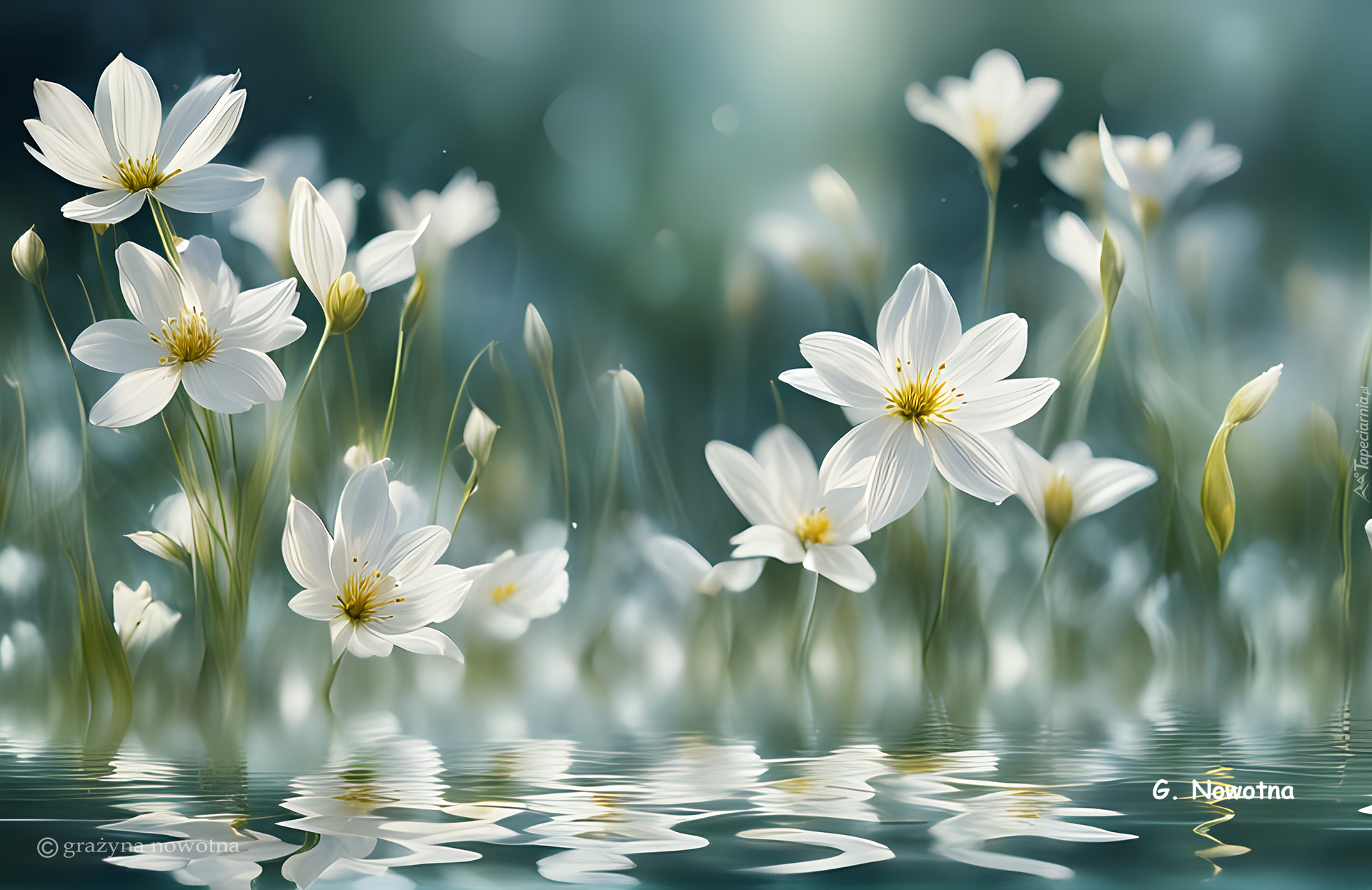 Edytor tapety: Rozświetlone białe kwiaty w wodzie