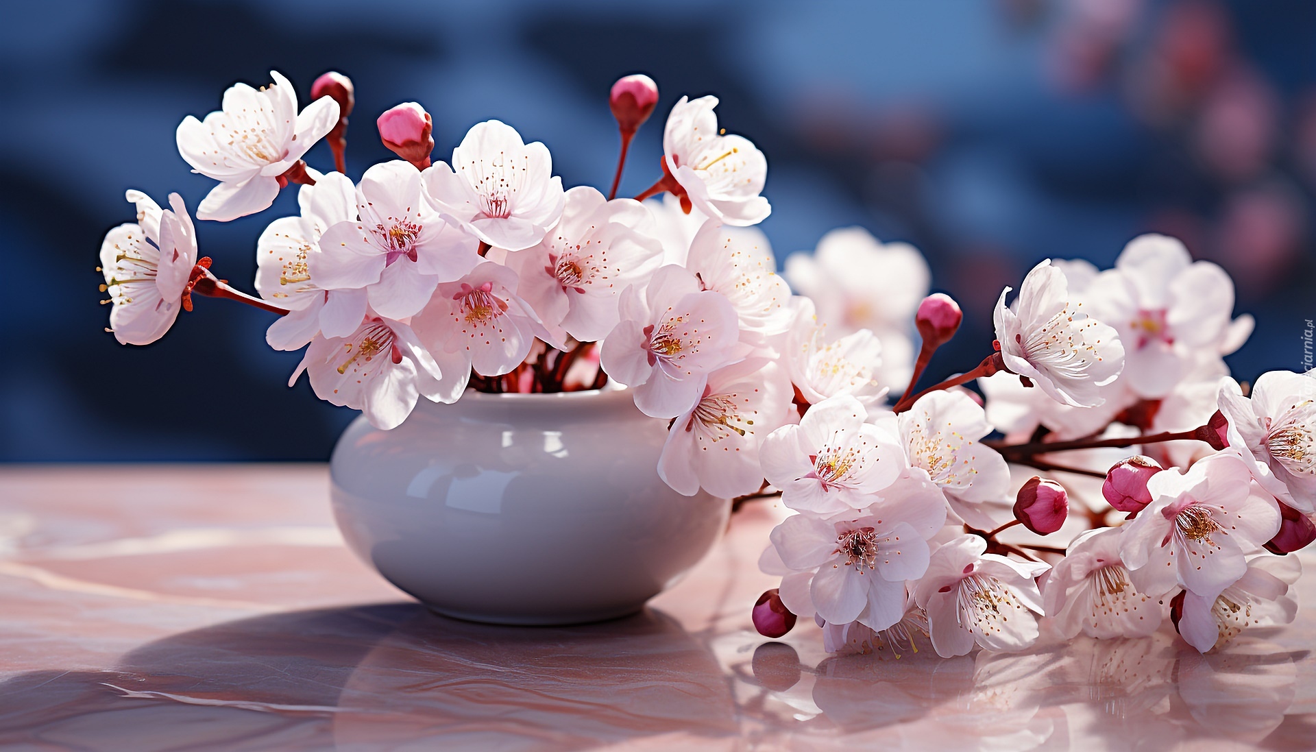 Edytor tapety: Bladoróżowe kwiatki na gałązkach w blasku światła