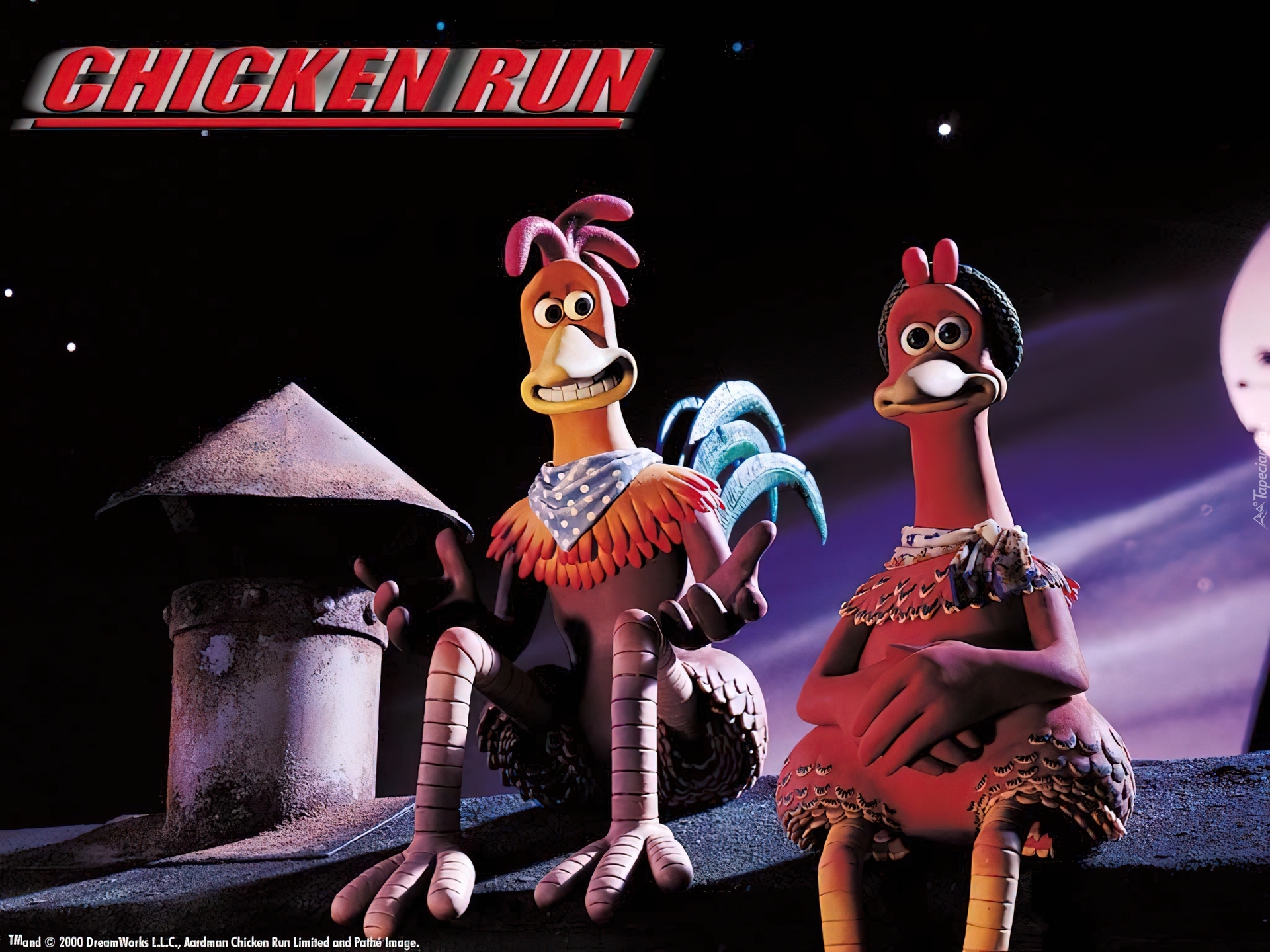 Edytor tapety: Uciekajace kurczaki, Chicken Run, dach, noc