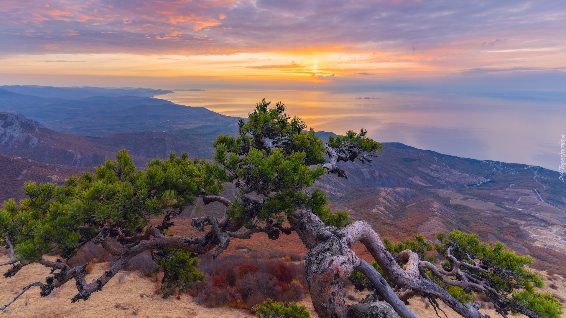Edytor tapety: Sosna na tle wschodu słońca nad Morzem Czarnym