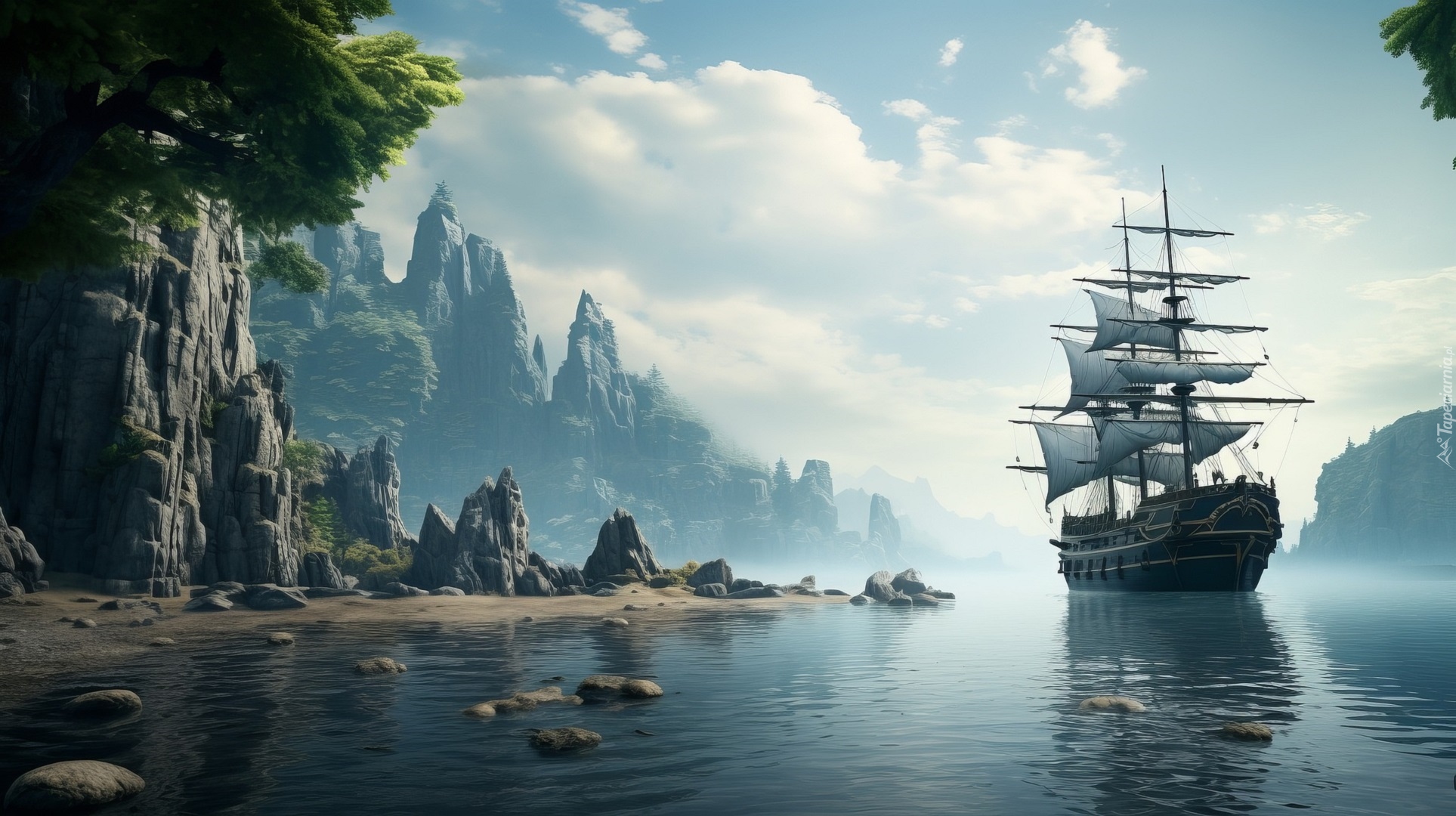 Edytor tapety: Żaglowiec w zatoce na wybrzeżu