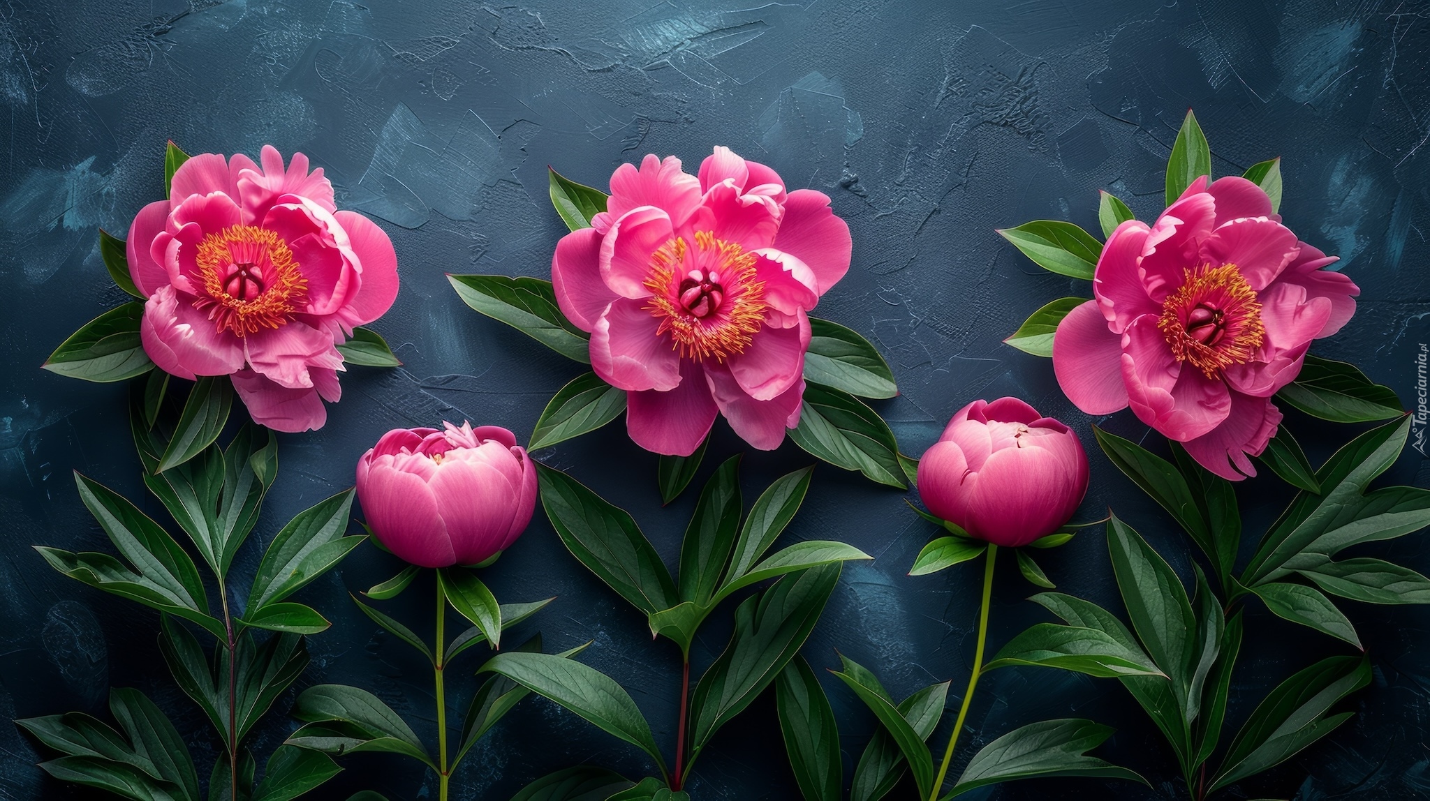 Edytor tapety: Rozwinięte kwiaty piwonii z pąkami