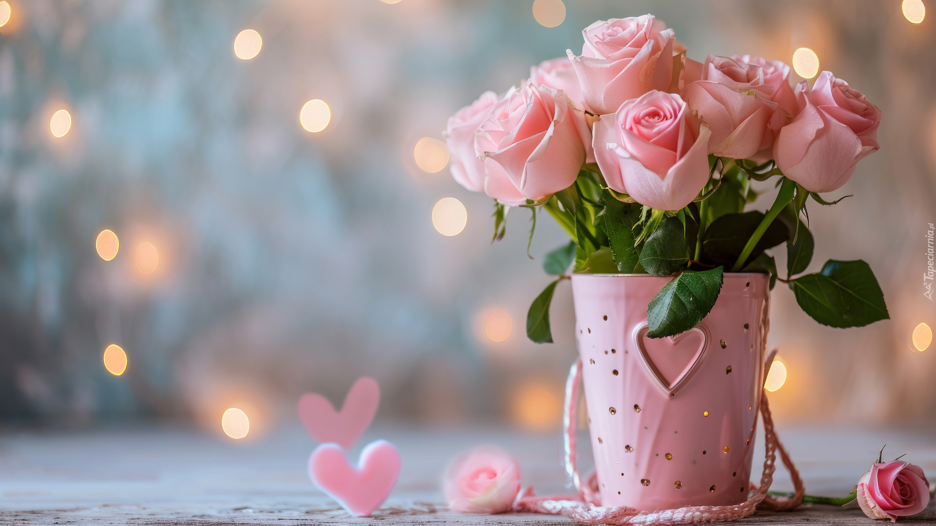 Edytor tapety: Bukiet róż w wazonie z serduszkiem