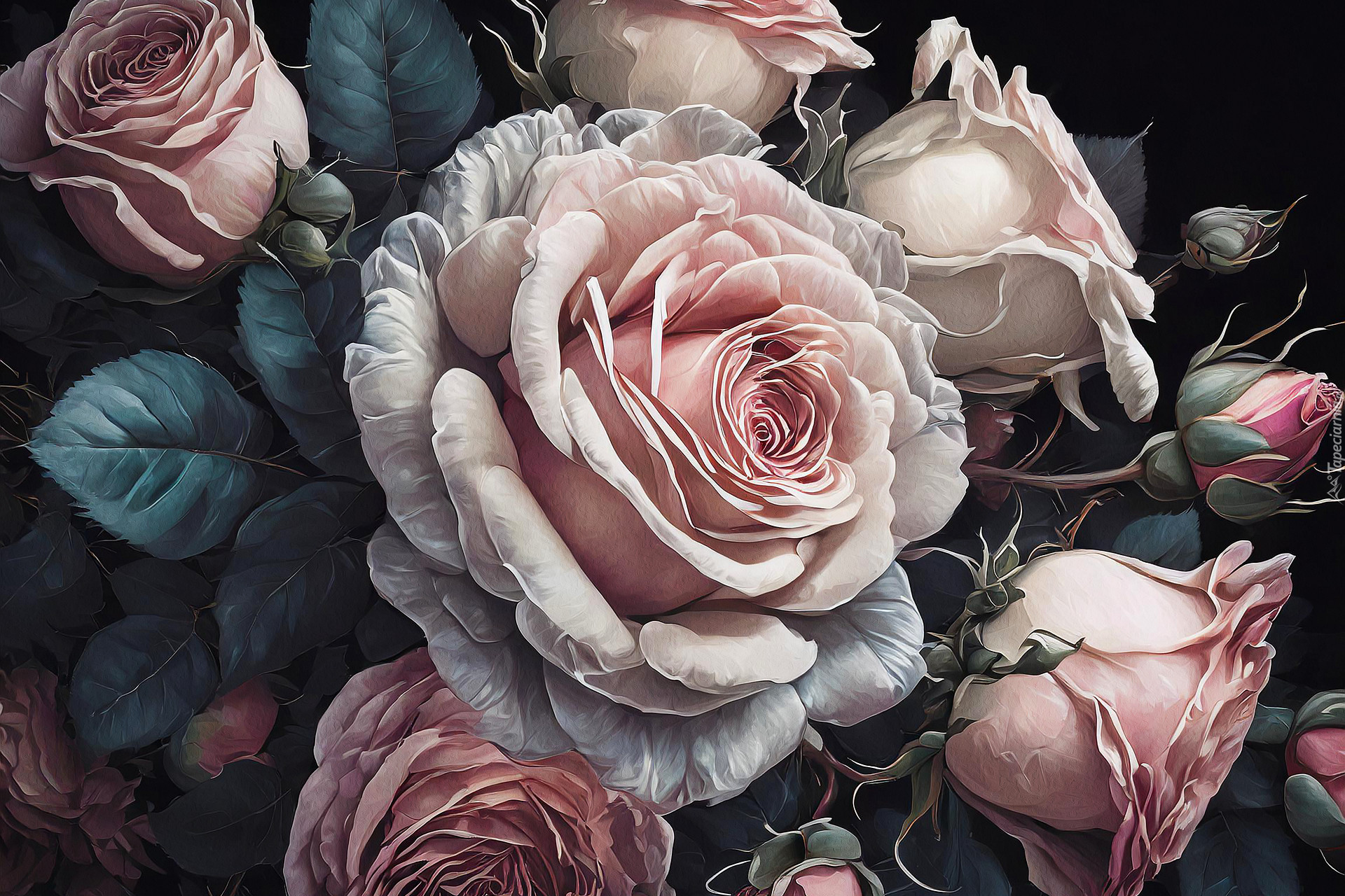 Edytor tapety: Bladoróżowe róże z pąkami w zbliżeniu