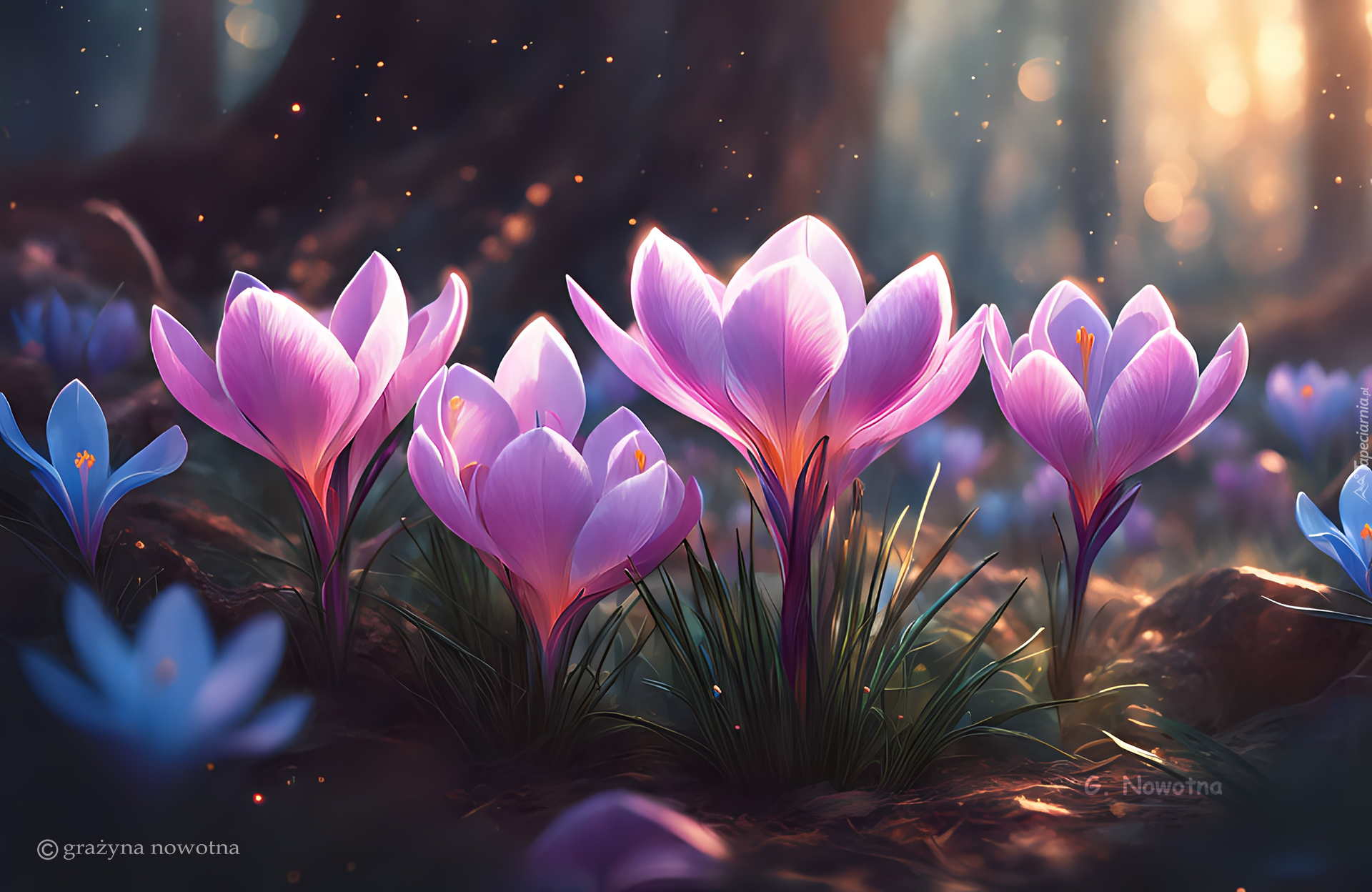 Edytor tapety: Rozświetlone różowe i niebieskie krokusy