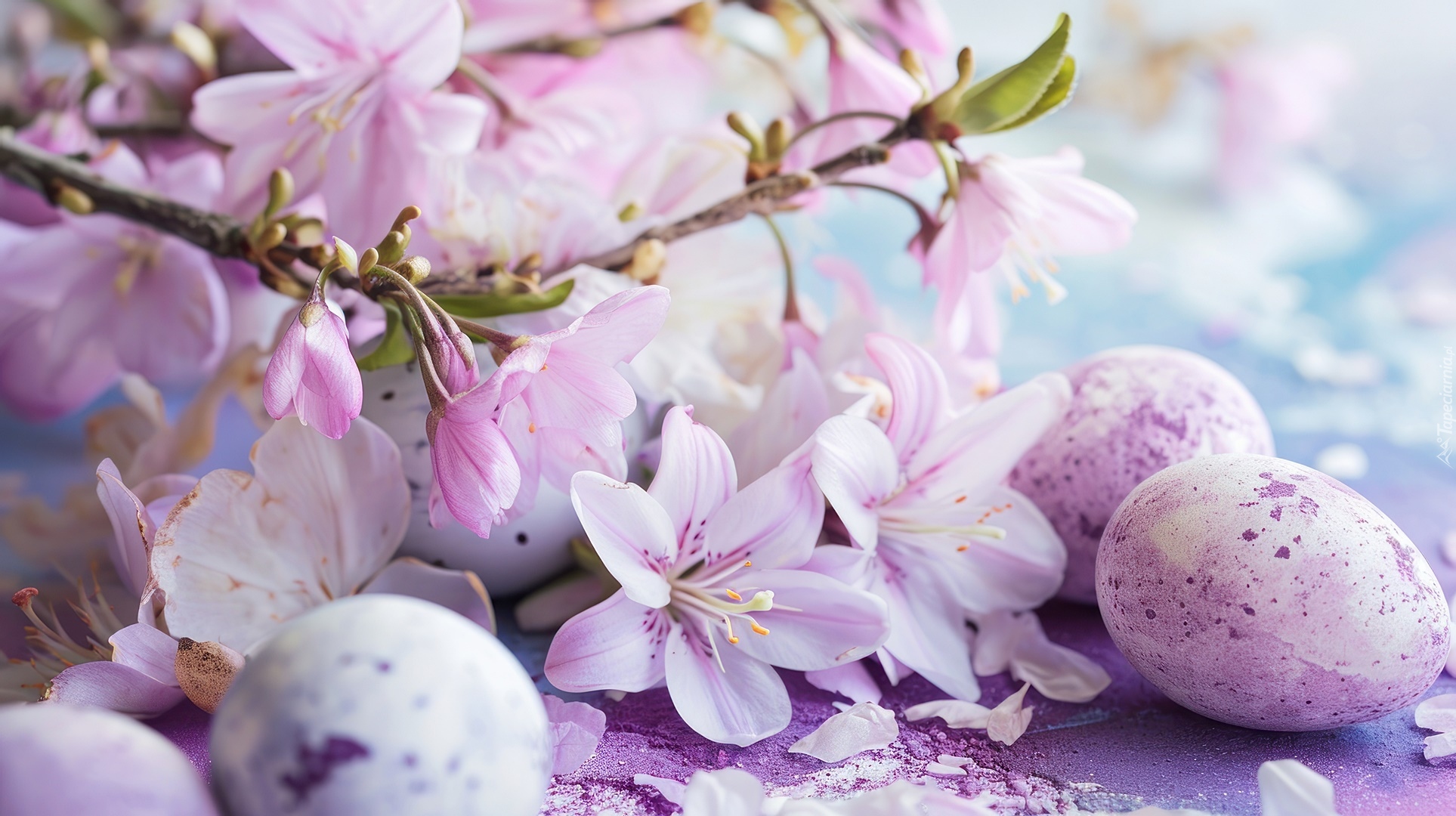 Edytor tapety: Wielkanocne pisanki i okwiecona gałązka