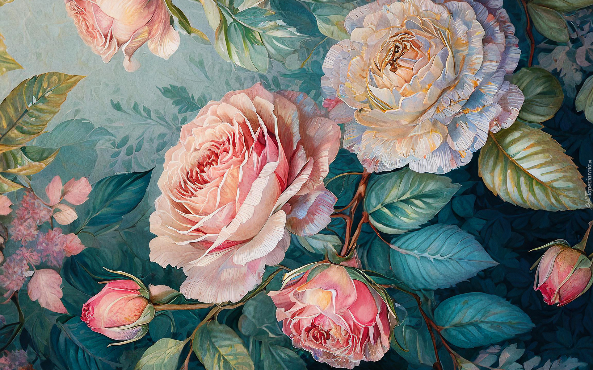 Edytor tapety: Kolorowe róże z pąkami w zbliżeniu