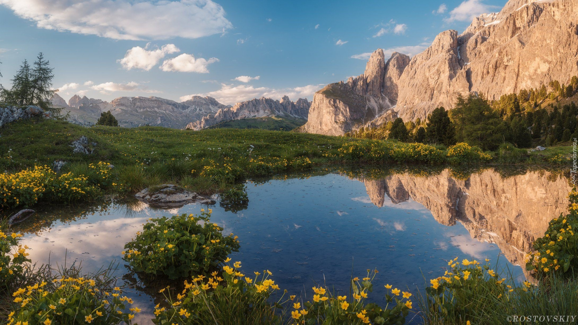 Edytor tapety: Odbicie gór w stawie i szczyty w oddali