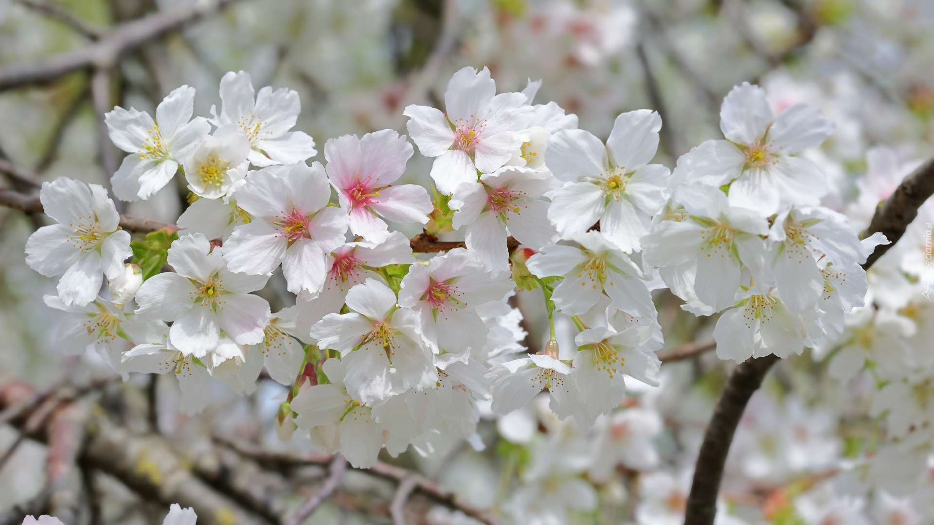 Edytor tapety: Rozświetlona gałązka z białymi kwiatkami