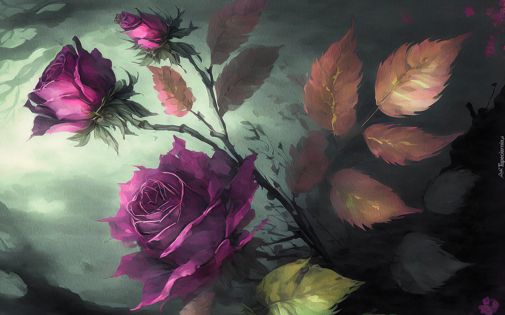 Edytor tapety: Gałązka z fioletowymi różami