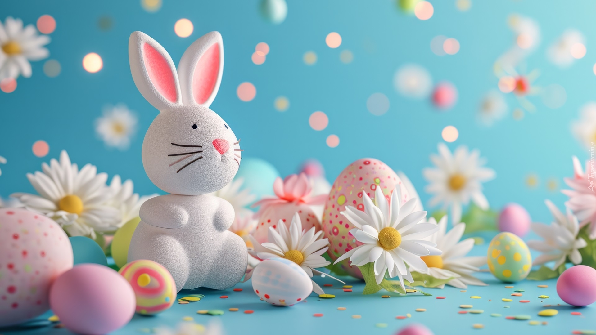 Edytor tapety: Zając wśród pisanek i kwiatków