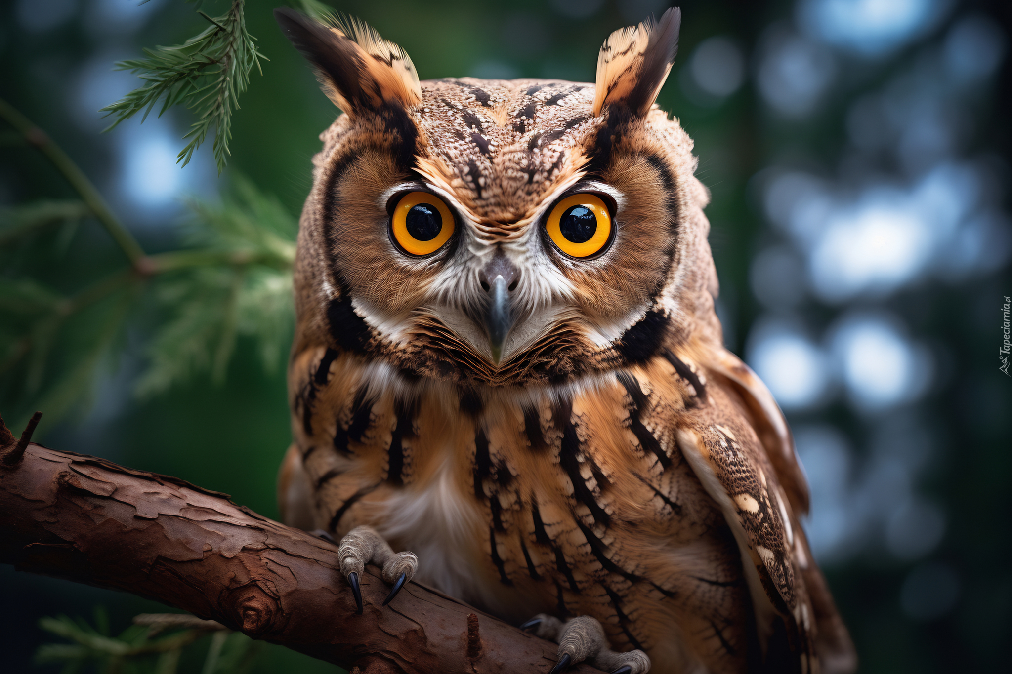 Edytor tapety: Puchacz na konarze w zbliżeniu