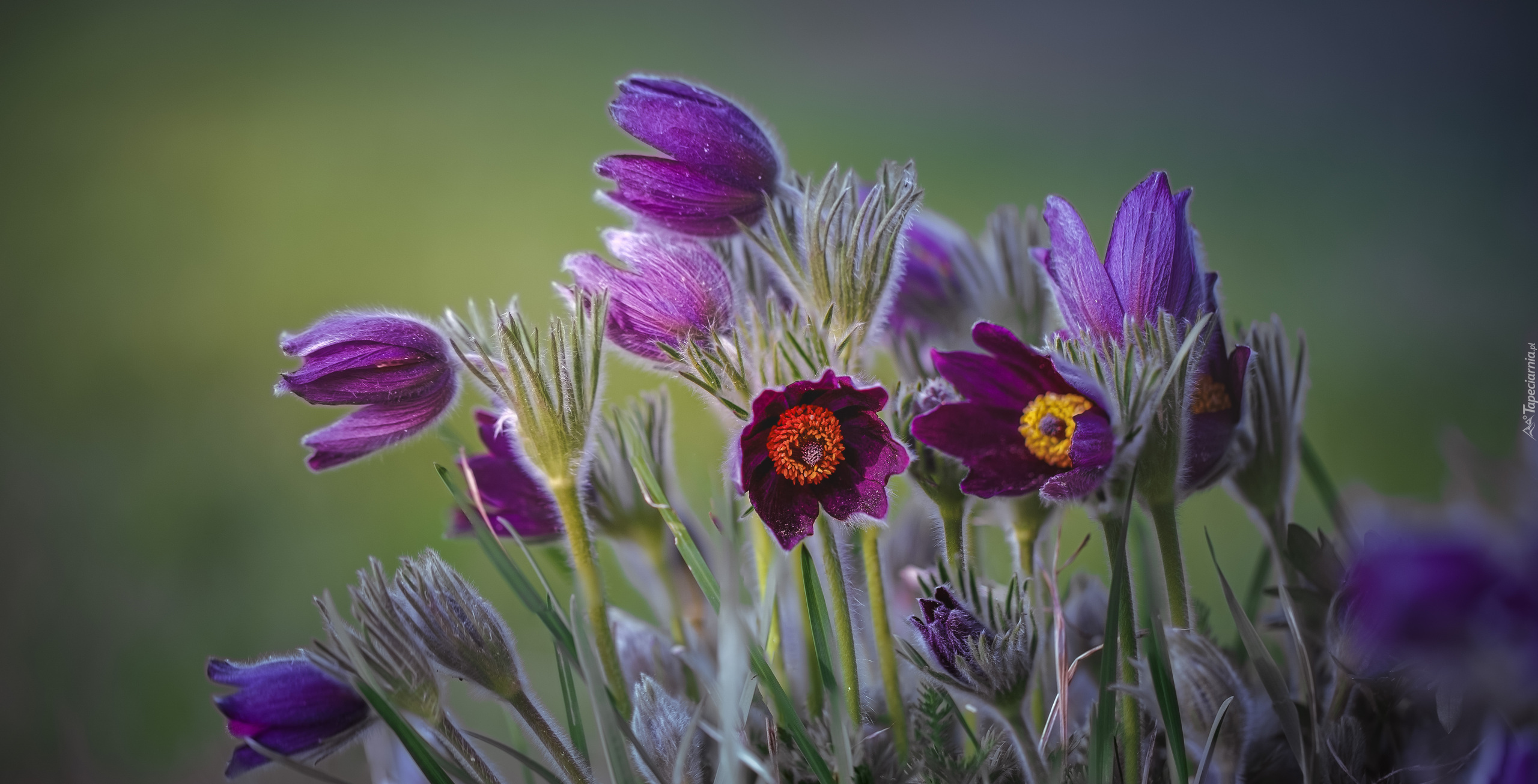 Edytor tapety: Fioletowe sasanki w zbliżeniu