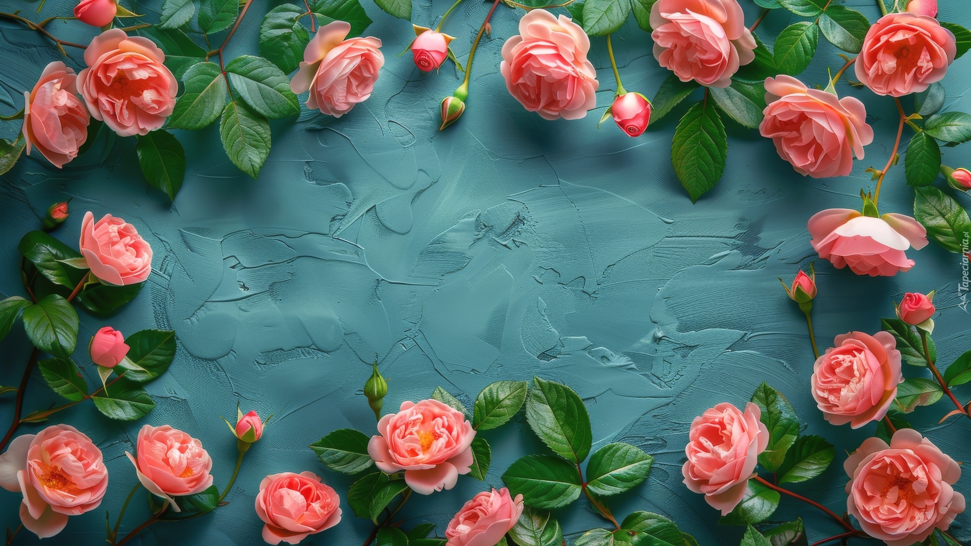 Edytor tapety: Ramka z róży na niebieskim tle