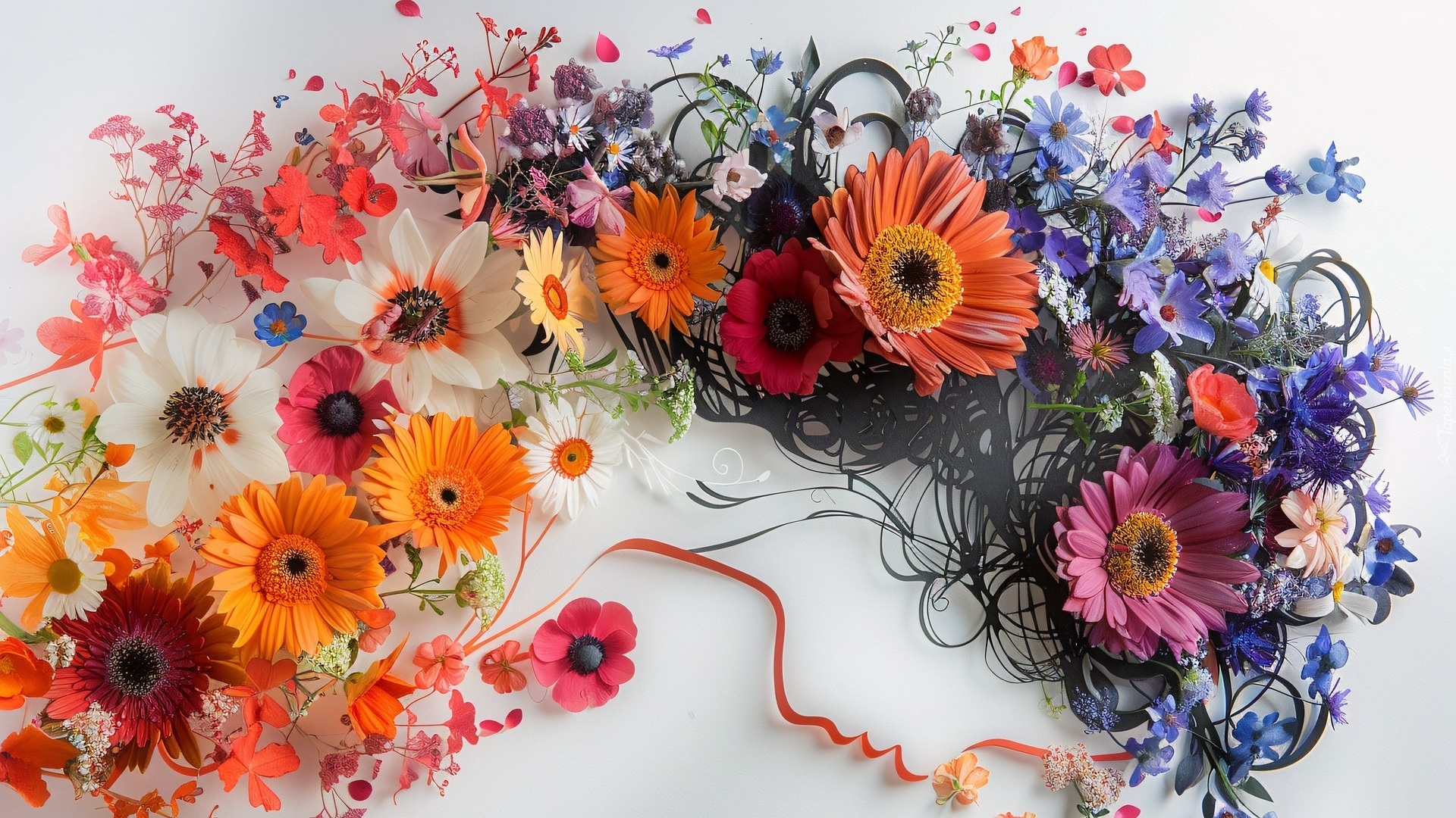 Edytor tapety: Kompozycja z gerber i kolorowych kwiatów