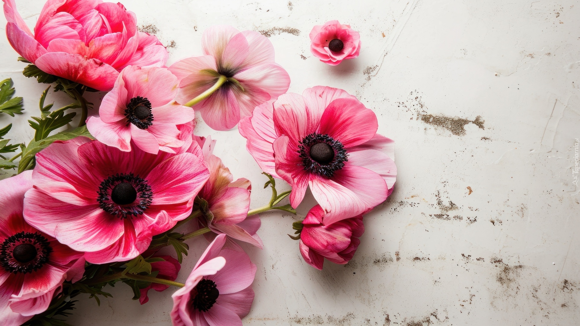 Edytor tapety: Rozwinięte różowe zawilce na jasnym tle