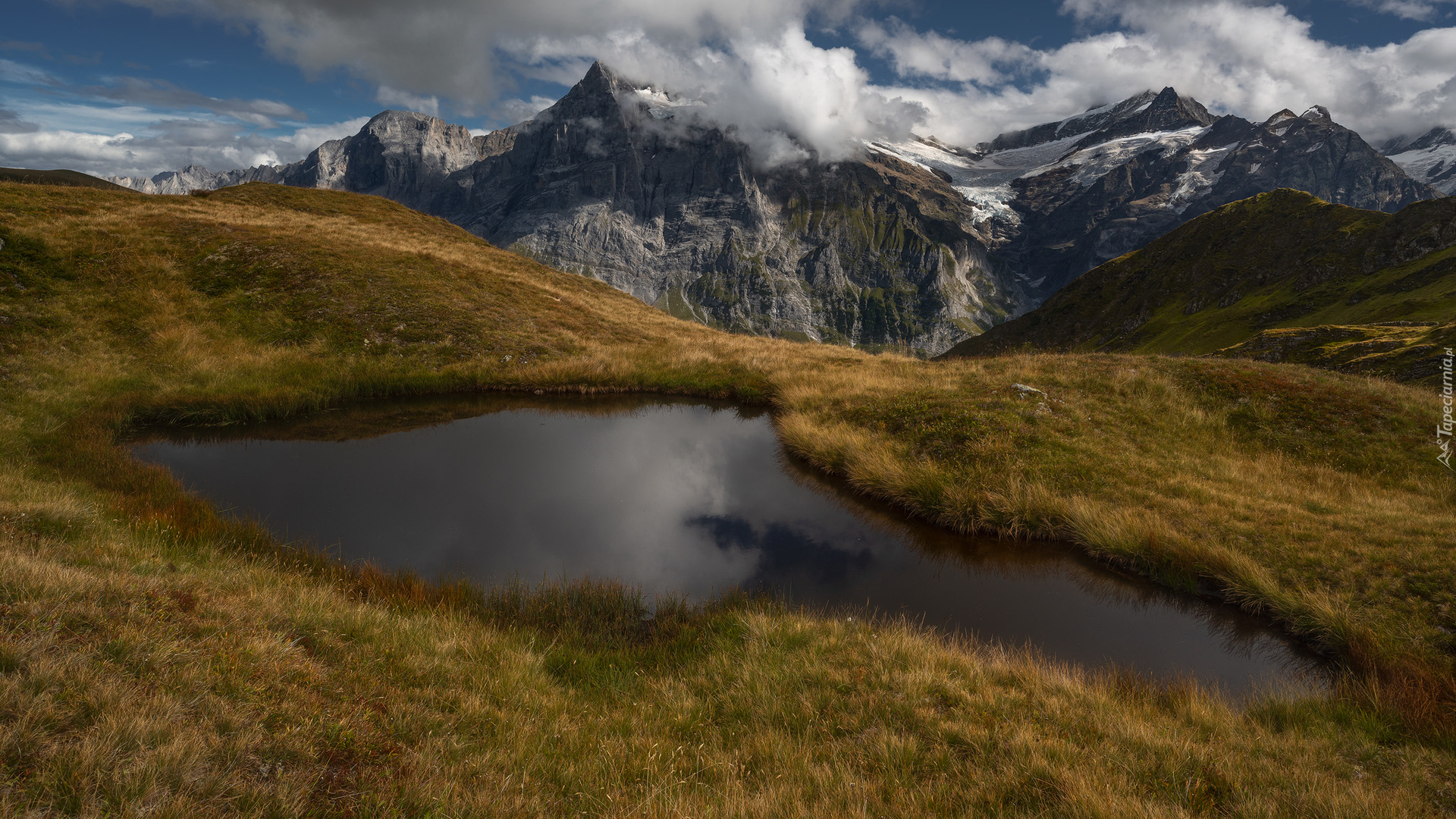 Edytor tapety: Mały staw i widok na góry