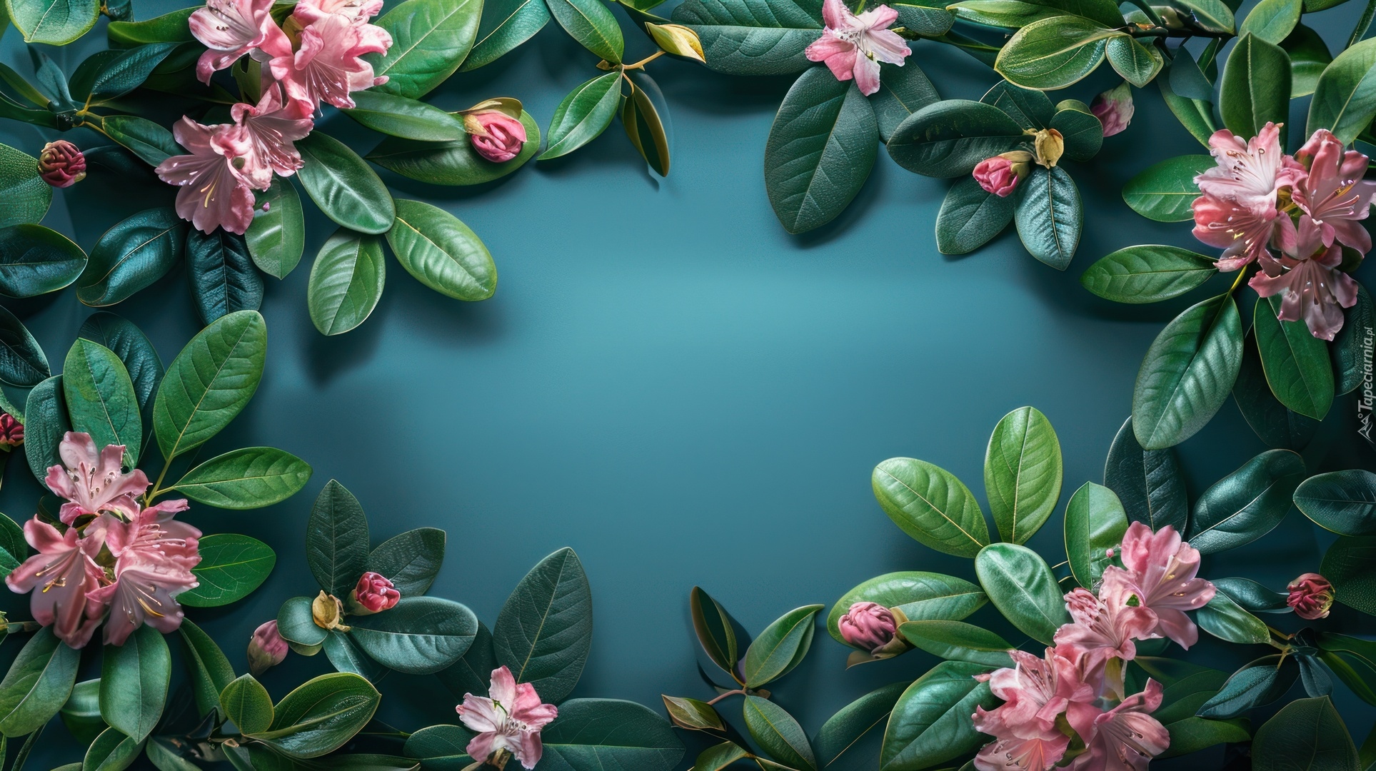 Edytor tapety: Różowe kwiaty różanecznika na zielonych listkach