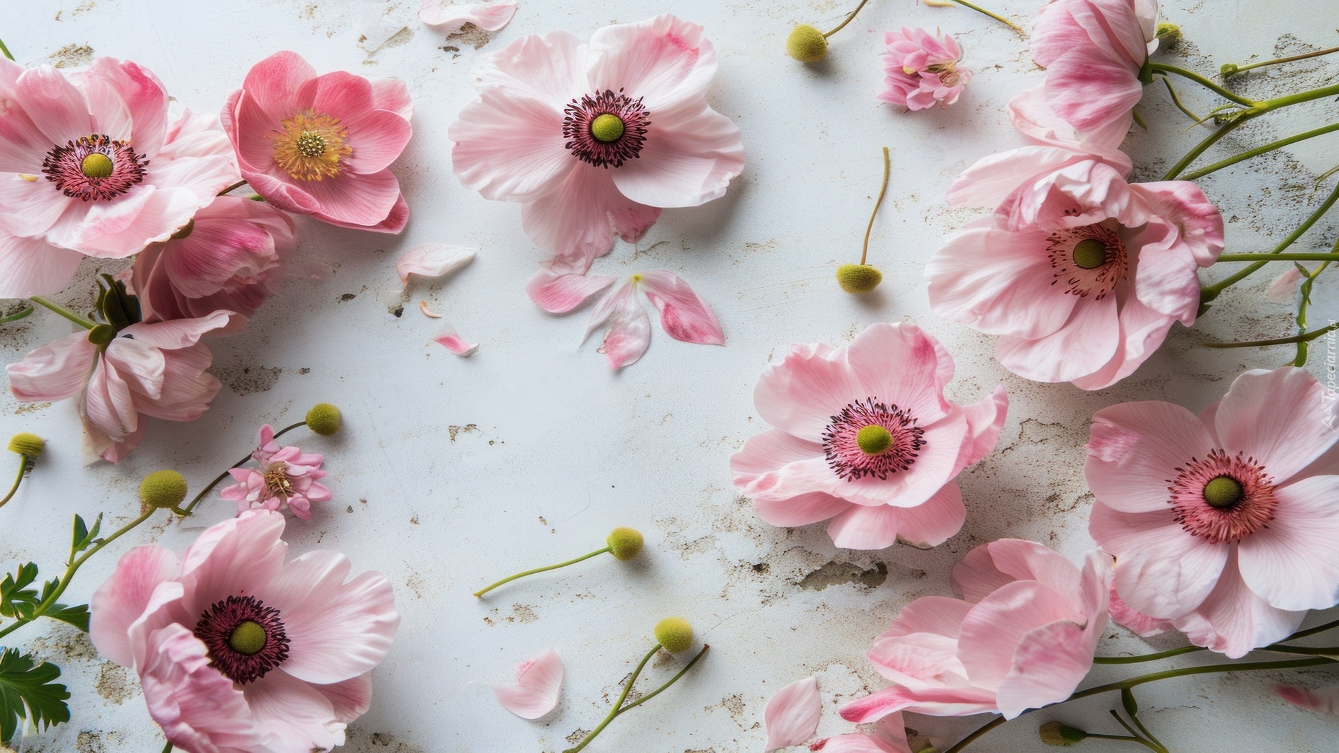 Edytor tapety: Jasnoróżowe zawilce na jasnym tle
