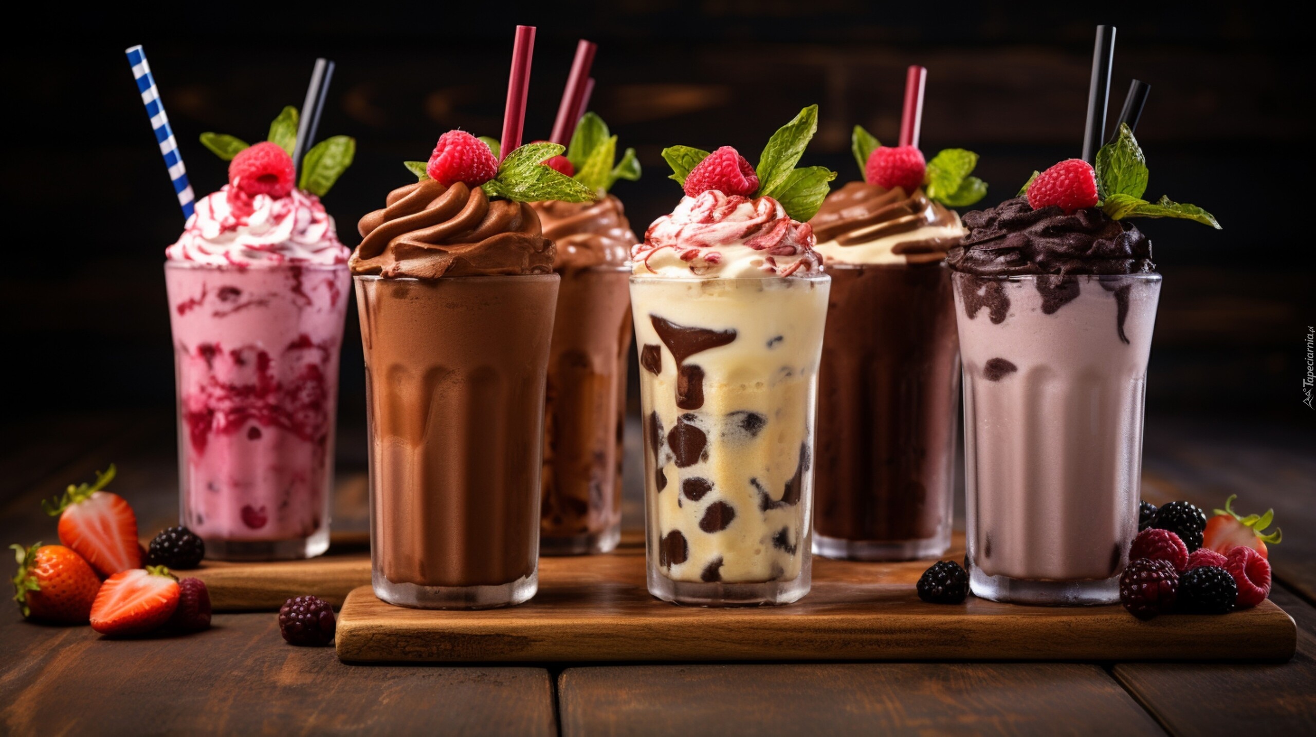 Edytor tapety: Różnosmakowe koktajle w szklankach