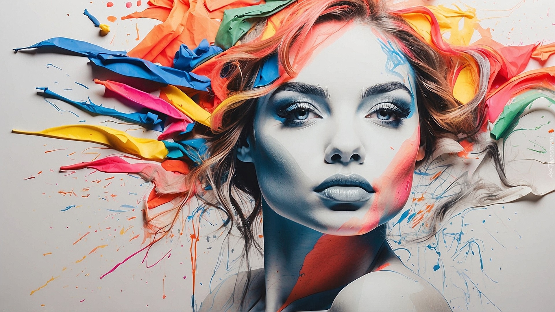 Edytor tapety: Kobieta z kolorowymi włosami w grafice
