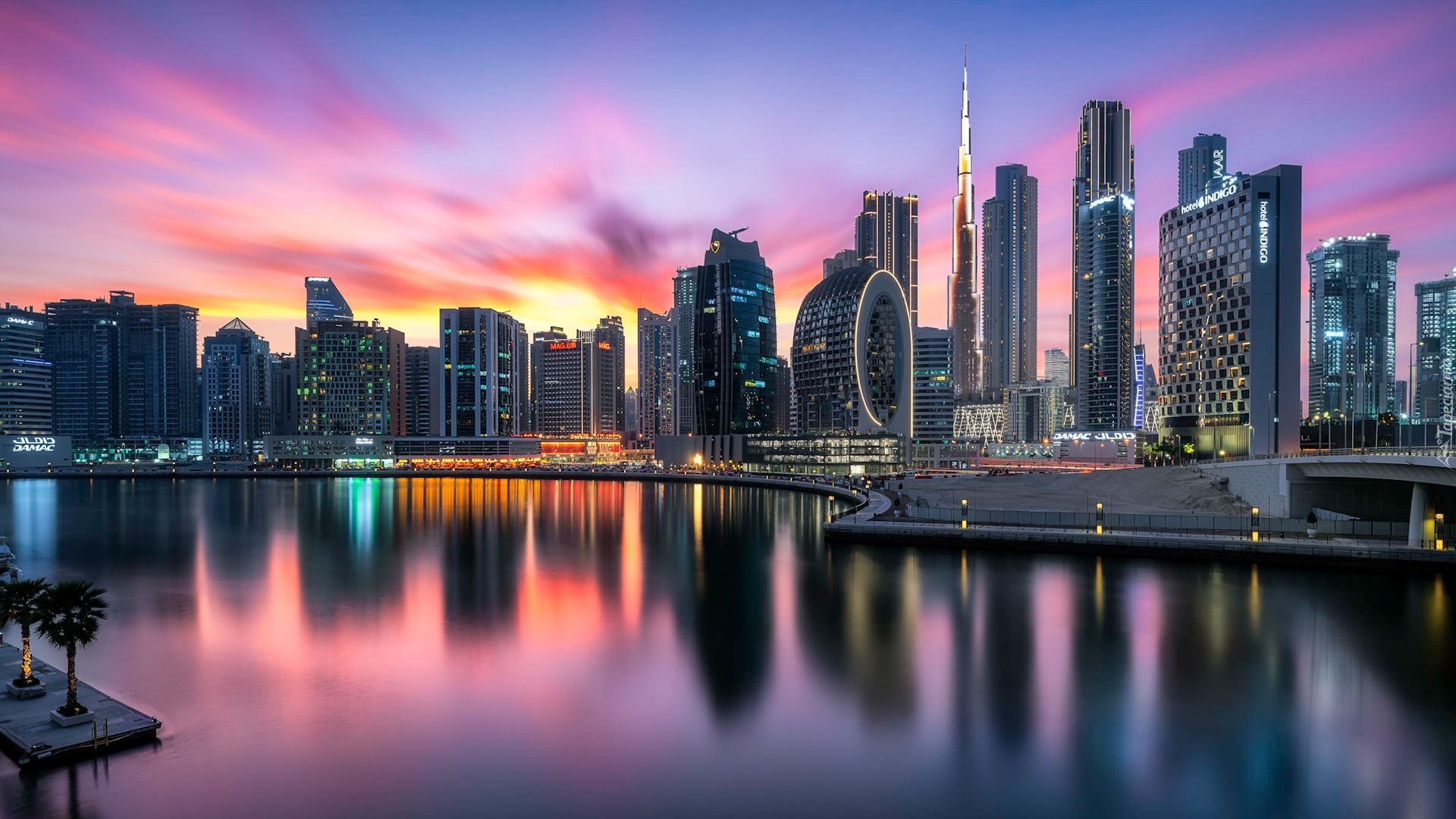 Edytor tapety: Drapacze chmur w Dubaju nad rzeką