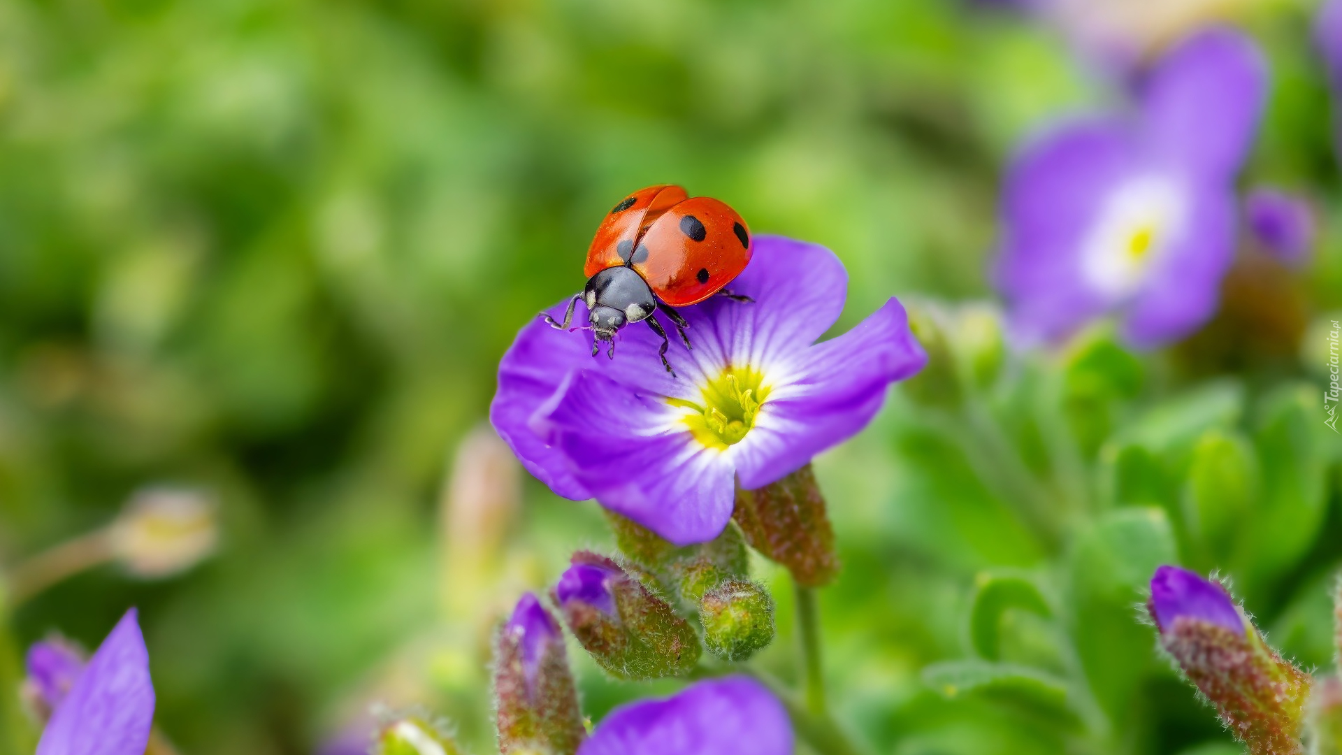 Edytor tapety: Biedroneczka na fioletowym kwiatku