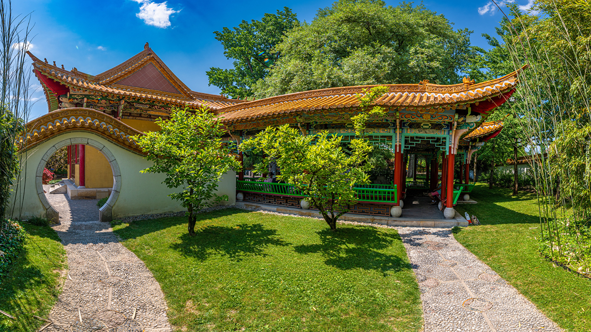 Edytor tapety: Dom z zadaszonym tarasem w ogrodzie