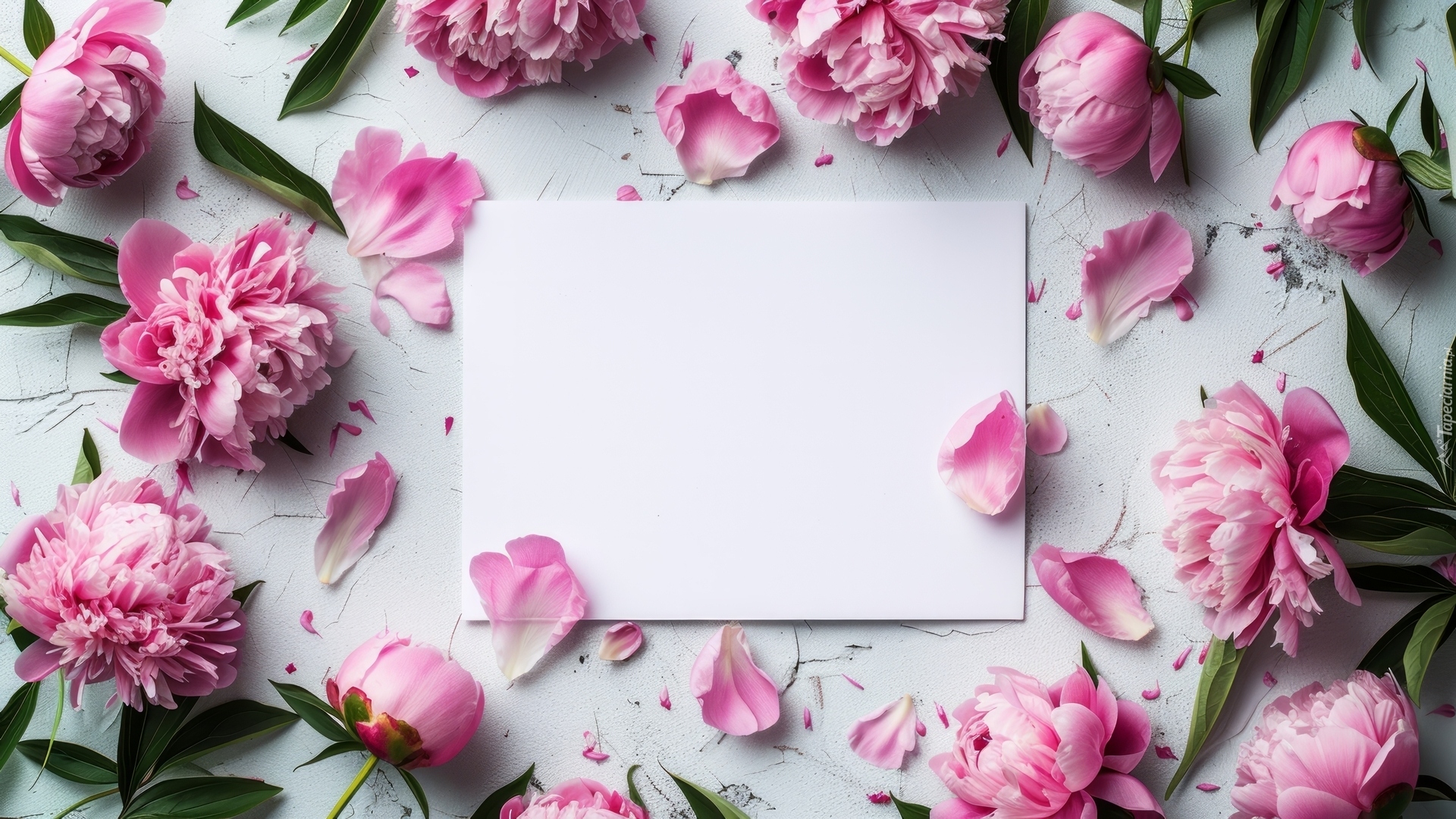 Edytor tapety: Piwonie wokół białej kartki