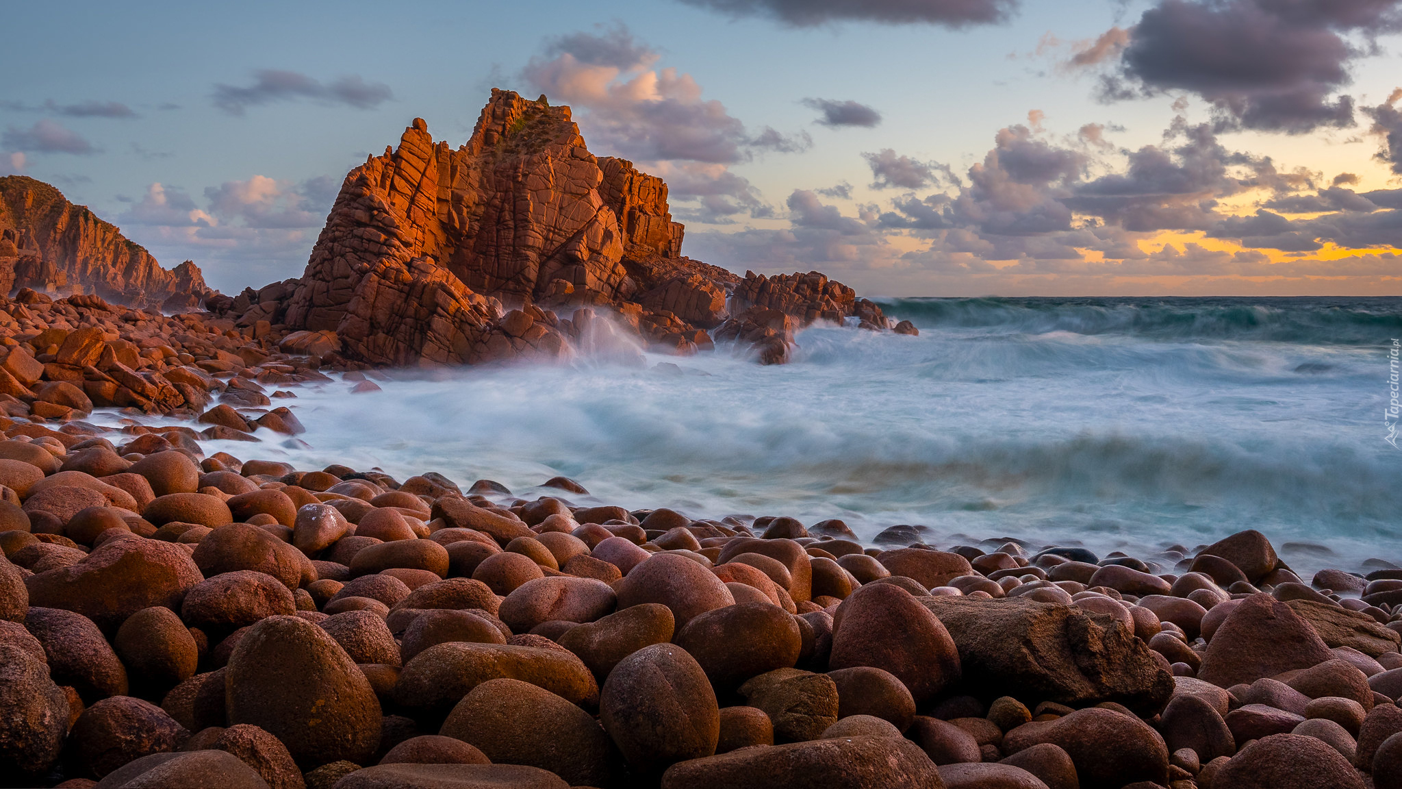 Edytor tapety: Rozświetlone skały i kamienie na brzegu morza
