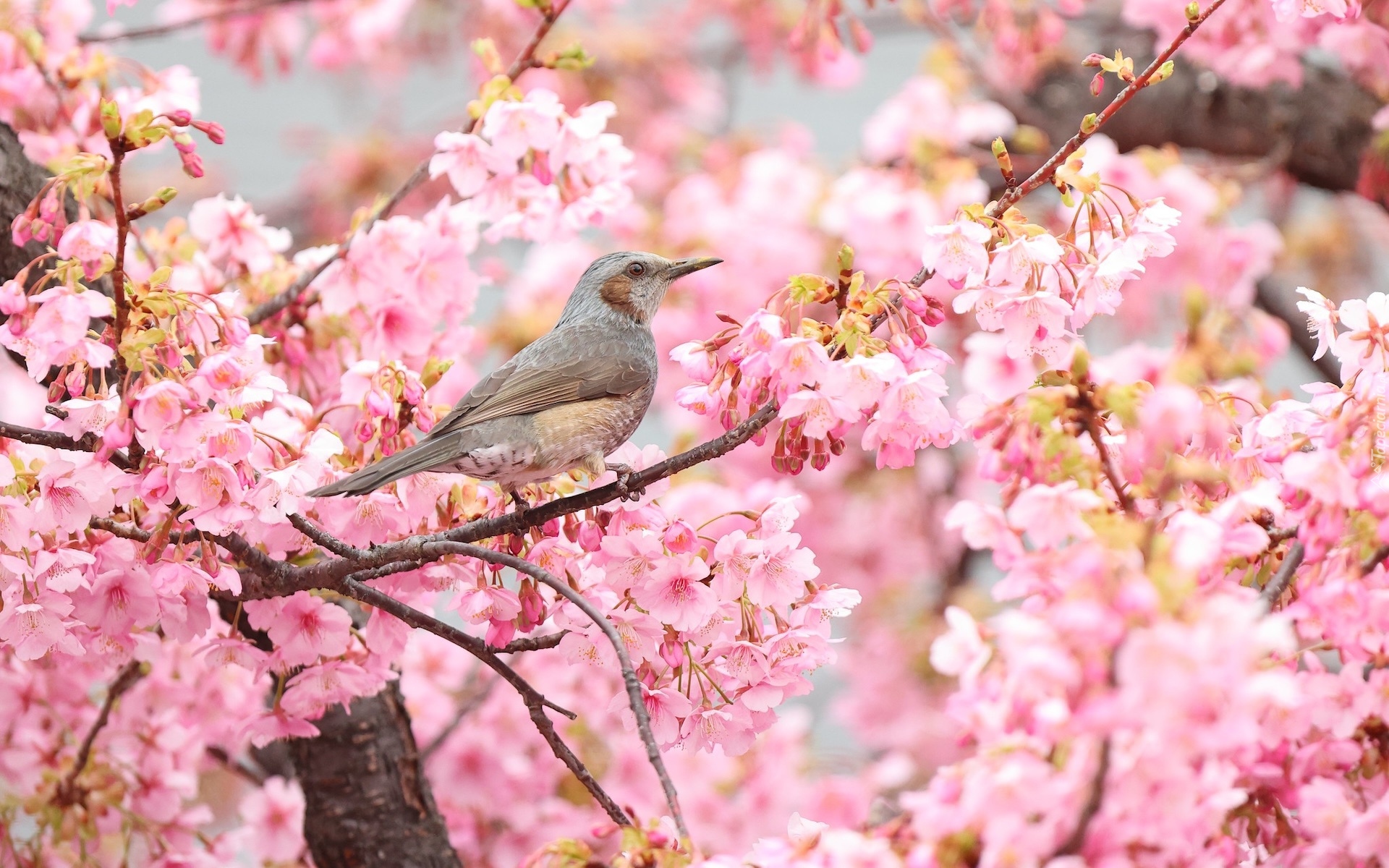 Edytor tapety: Szczeciak rudouchy wśród ukwieconych gaązek