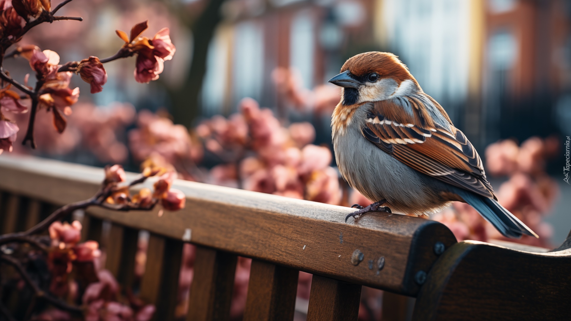 Edytor tapety: Wróbel na oparciu ławki