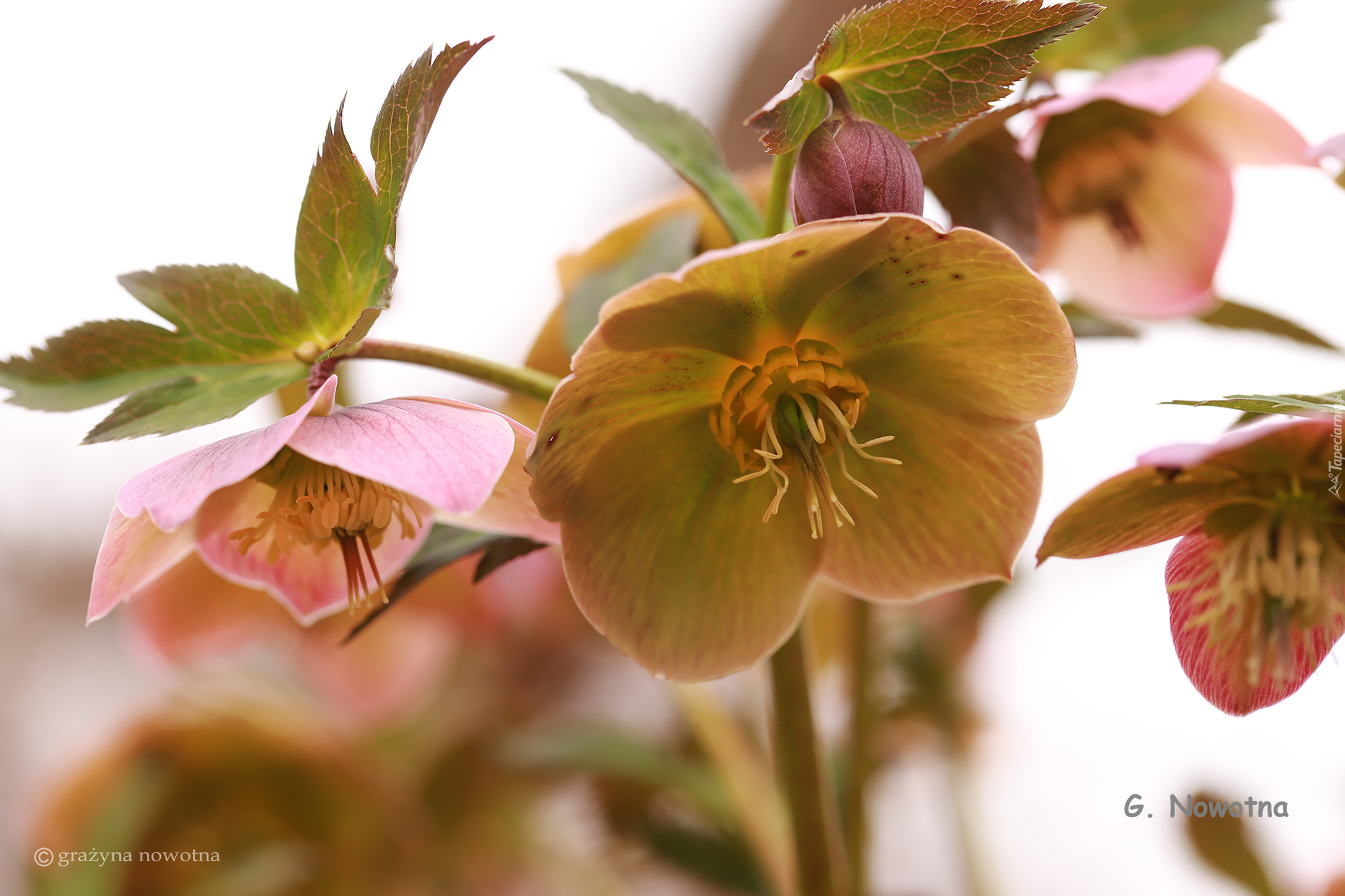 Edytor tapety: Kwiaty ciemiernika w zbliżeniu na jasnym tle
