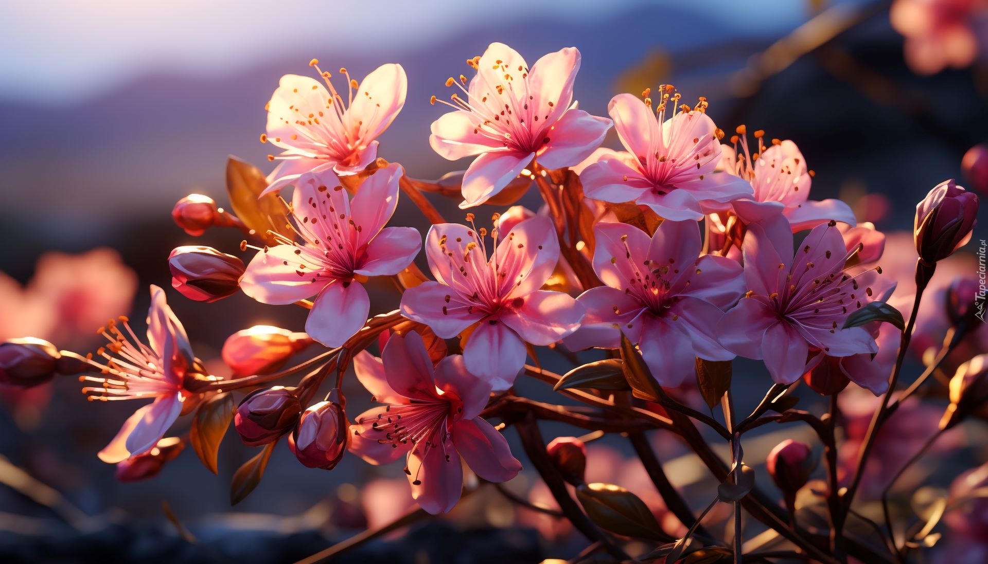 Edytor tapety: Ukwiecone gałązki z pąkami w blasku światła