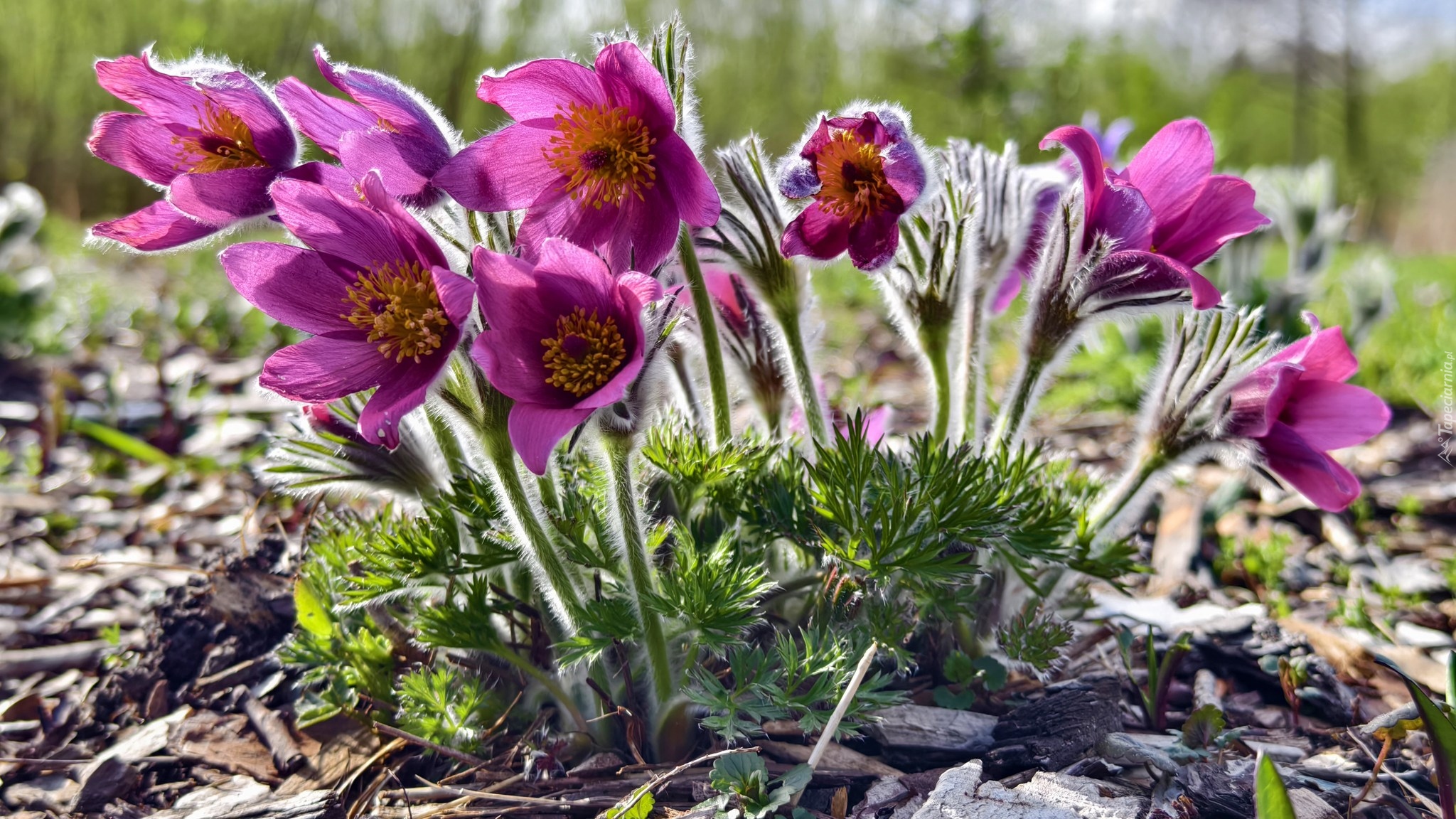 Edytor tapety: Kępka rozwiniętych fioletowych sasanek