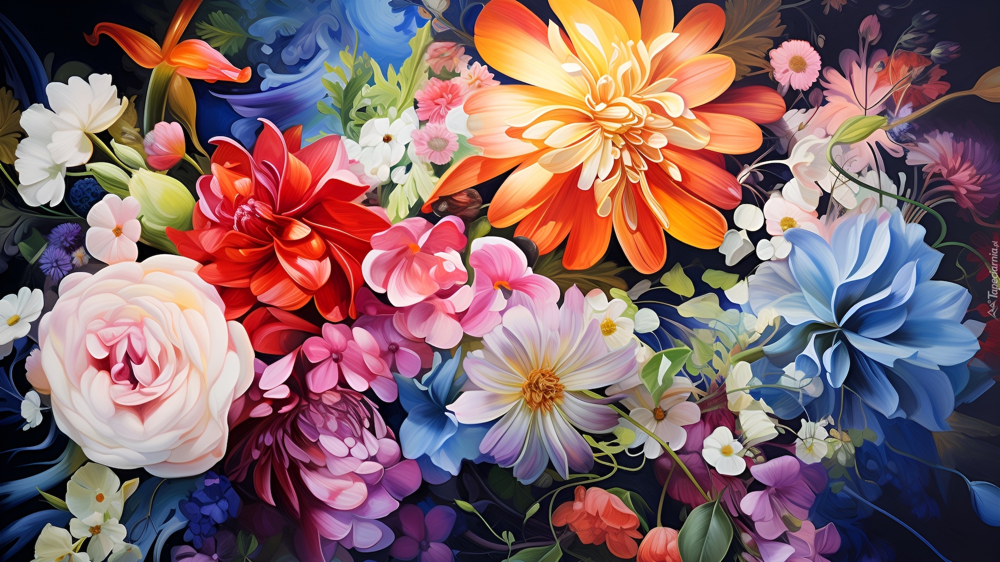 Edytor tapety: Różne kolorowe kwiaty w grafice
