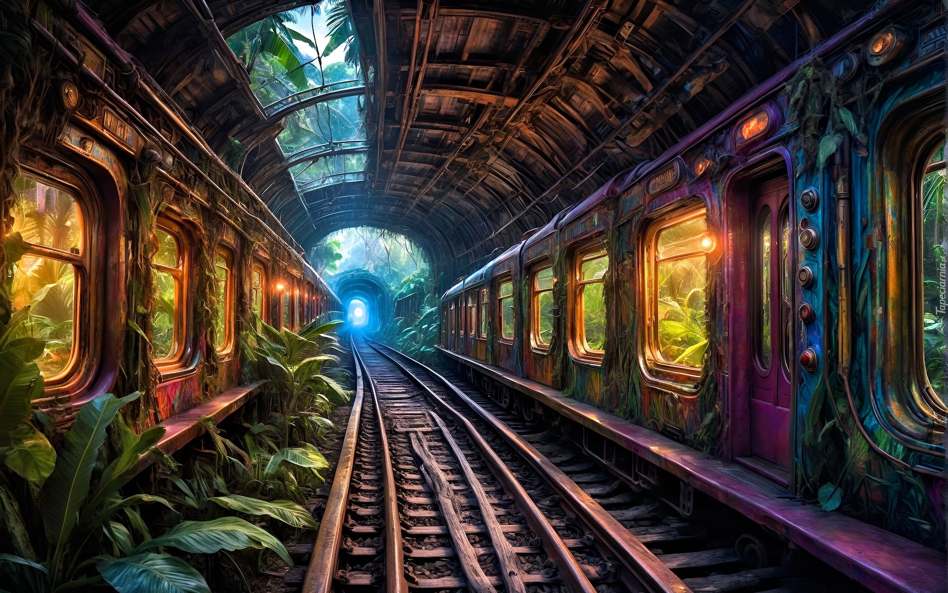 Edytor tapety: Rośliny przy torze kolejowym w tunelu