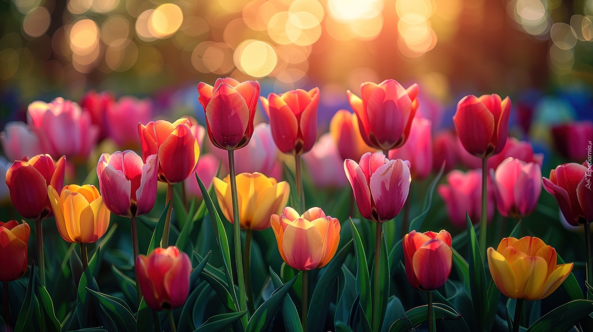 Edytor tapety: Kolorowe tulipany w blasku światła