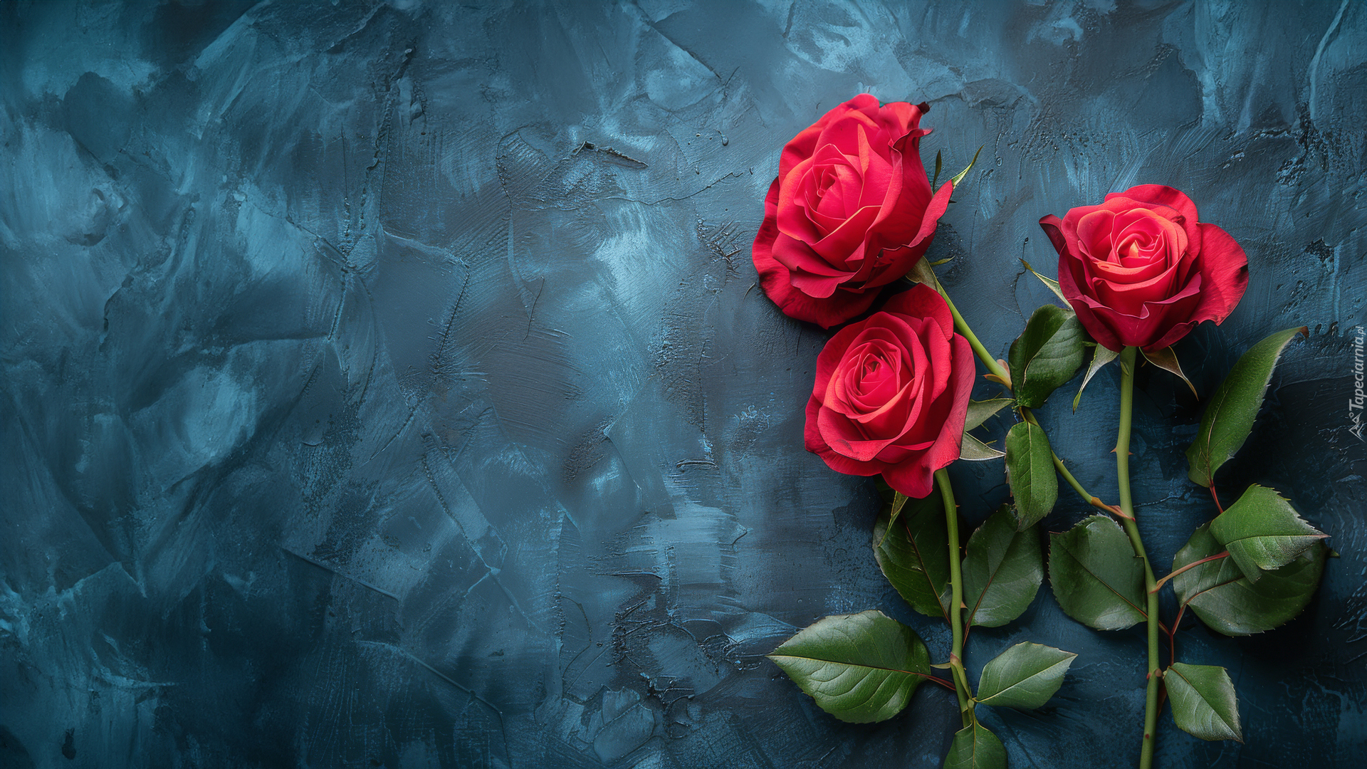 Edytor tapety: Trzy czerwone róże na ciemnym tle